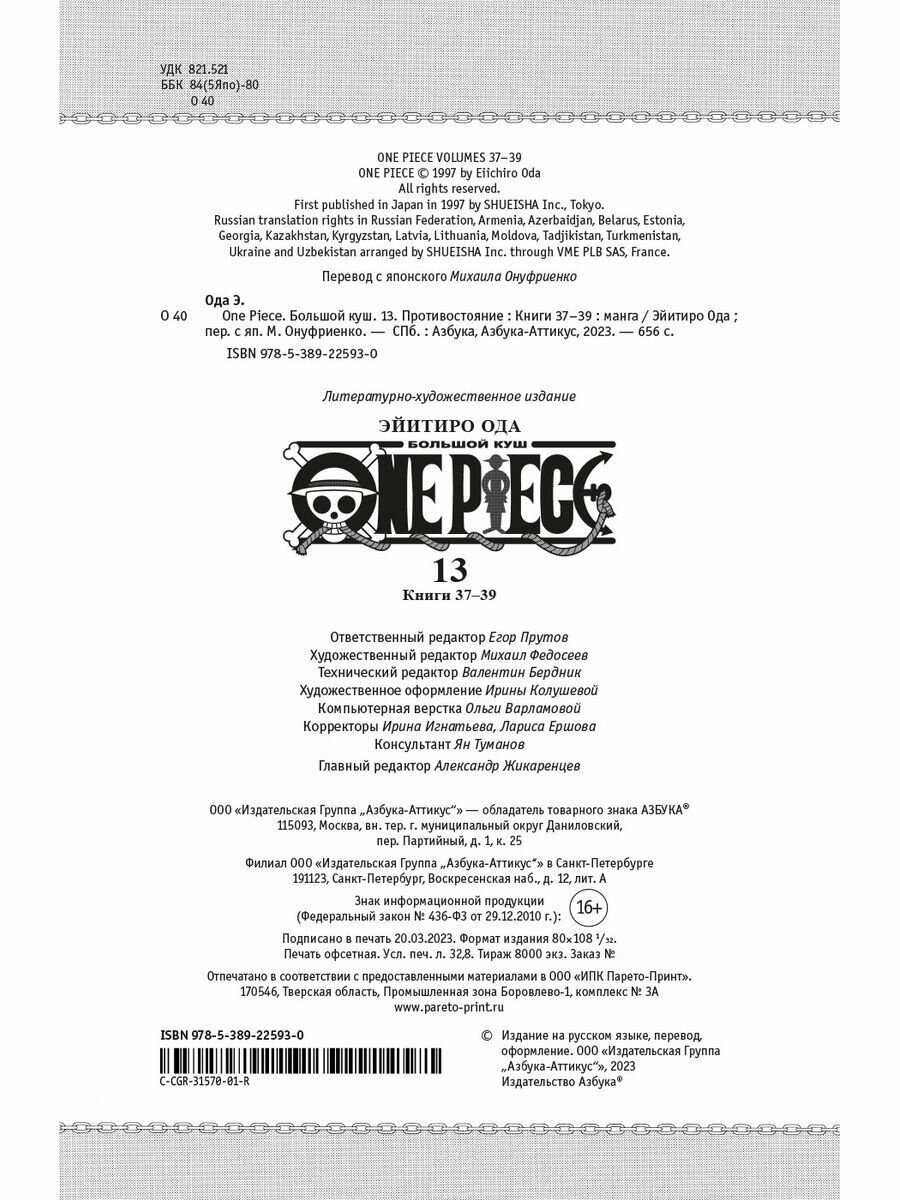 One Piece. Большой куш. Книга 13. Противостояние (Эйитиро Ода); Азбука, 2023