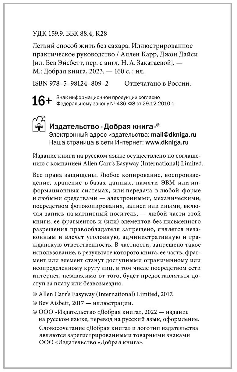 Легкий способ жить без сахара (Эйсбетт Бев, Карр Аллен, Дайси Джон); Добрая книга, 2023