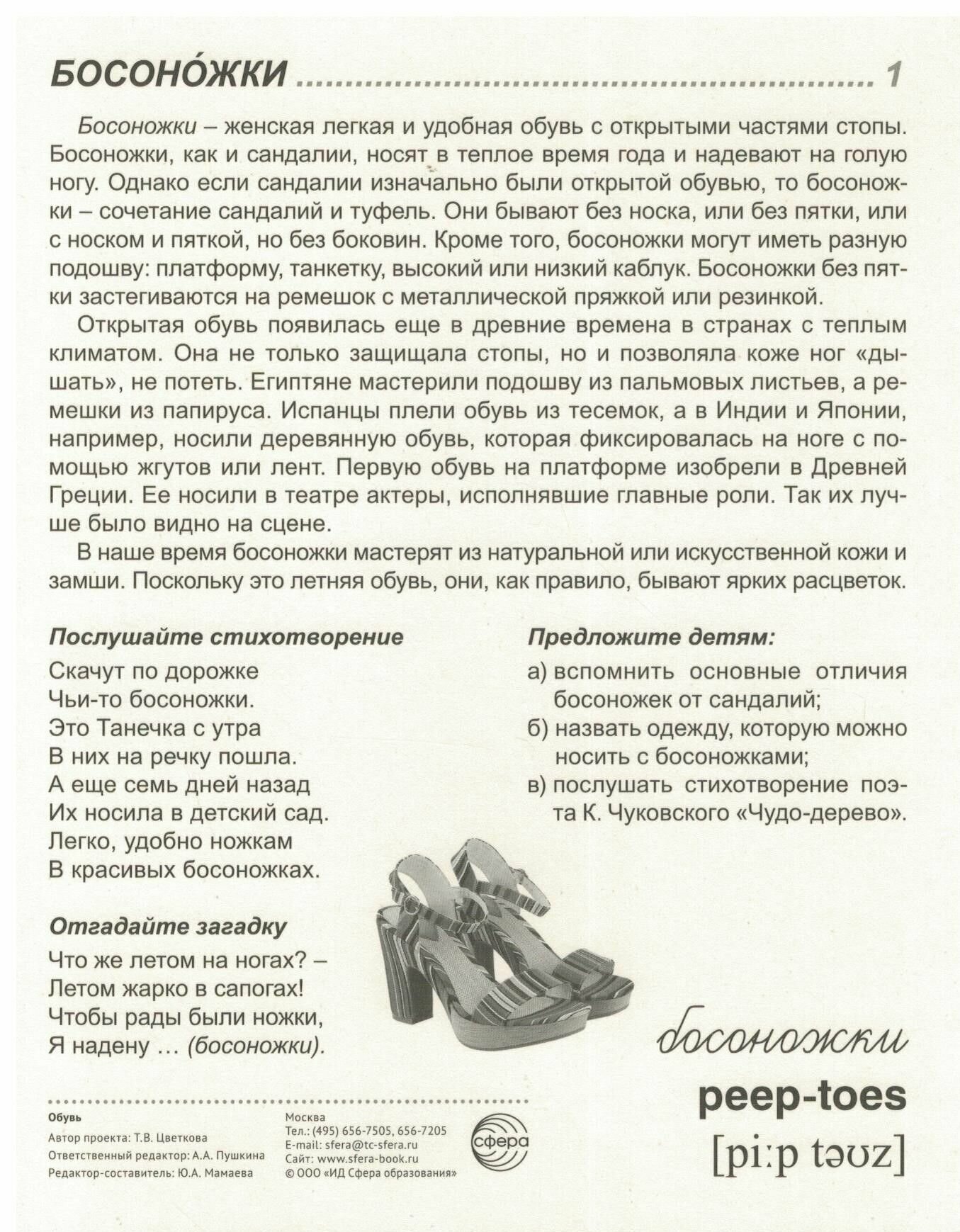 Дем. картинки СУПЕР Обувь. 16 демонстр. картинок с текстом (173х220 мм) (Цветкова Татьяна); Творческий центр Сфера Издательство, 2023