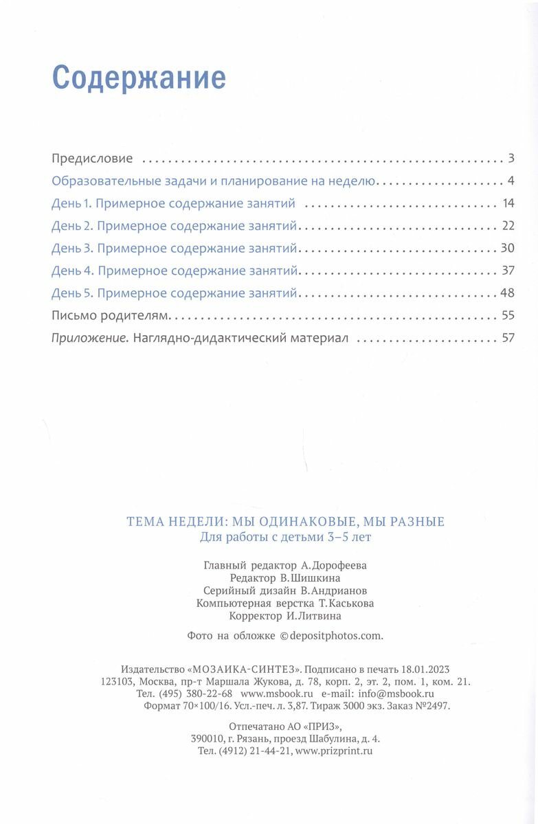 Тема недели: «Мы одинаковые, мы разные». 3–5 лет. Методическое пособие. Программа, основанная на ECERS. Пособие издано в рамках учебно-методического комплекта к программе «ОТ РОЖДЕНИЯ ДО ШКОЛЫ». Книга входит в серию пособий, созданные коллективом авторов под руководством Д. Краер, и содержит тщательно разработанную технологию работы с детьми 3–5 лет, основанную на многолетнем опыте наблюдения за работой ДОО и оценке их образовательной среды по Шкале для комплексной оценки качества образования в дошкольных образовательных организациях (ECERS).