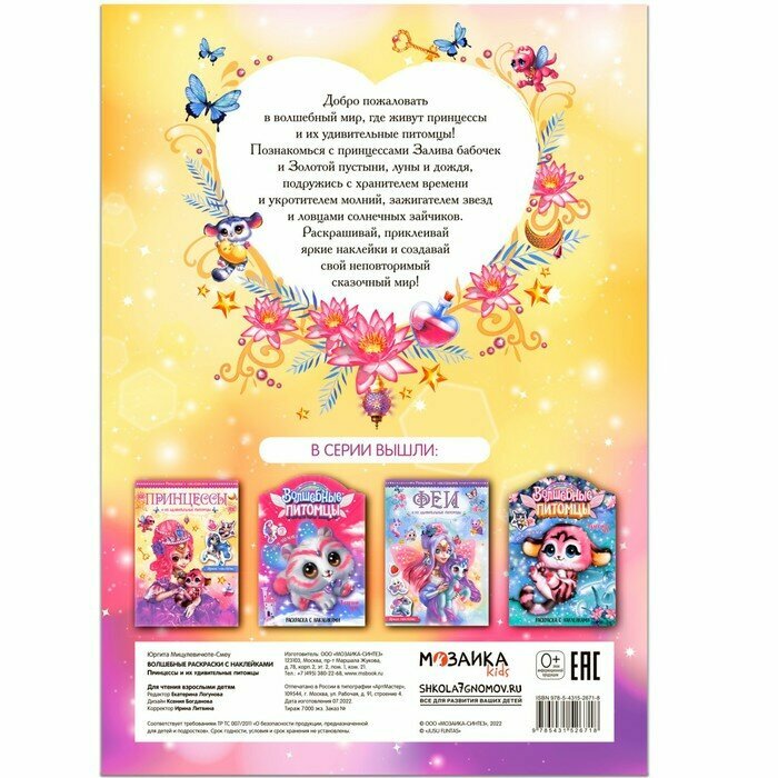 Принцессы и их удивительные питомцы. Раскраска с наклейками (Мицулевичюте-Смеу Юргита); МОЗАИКА kids, 2022