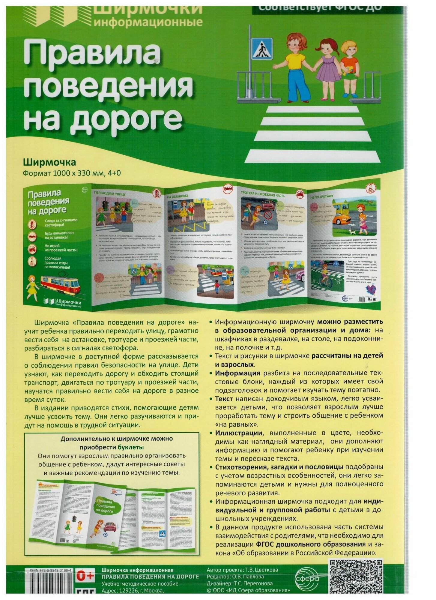 Правила поведения на дороге. Ширмочка информационная (1000х330 мм 4+0)) (Цветкова Татьяна); Творческий центр Сфера Издательство, 2023