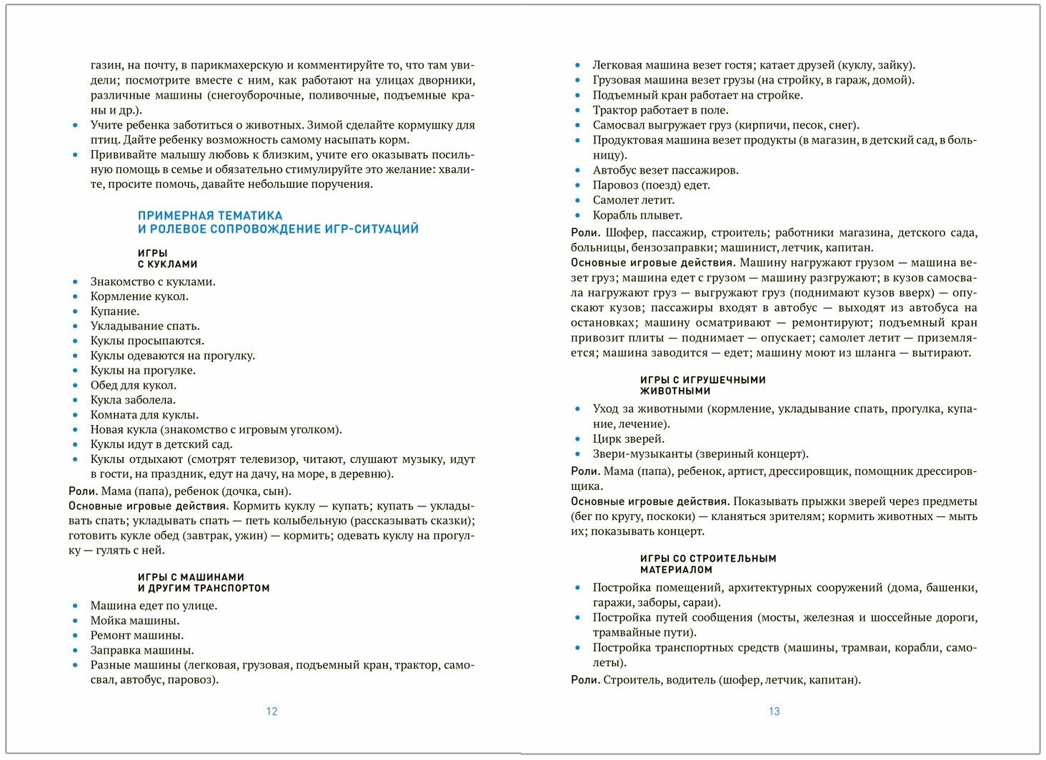 Пособие издано в рамках учебно-методического комплекта к программе «ОТ РОЖДЕНИЯ ДО ШКОЛЫ». В пособии представлены оригинальные авторские материалы: методические рекомендации, примерные сценарии сюжетно-ролевых, театрализованных и дидактических игр, которые можно использовать в работе с детьми 2–3 лет.