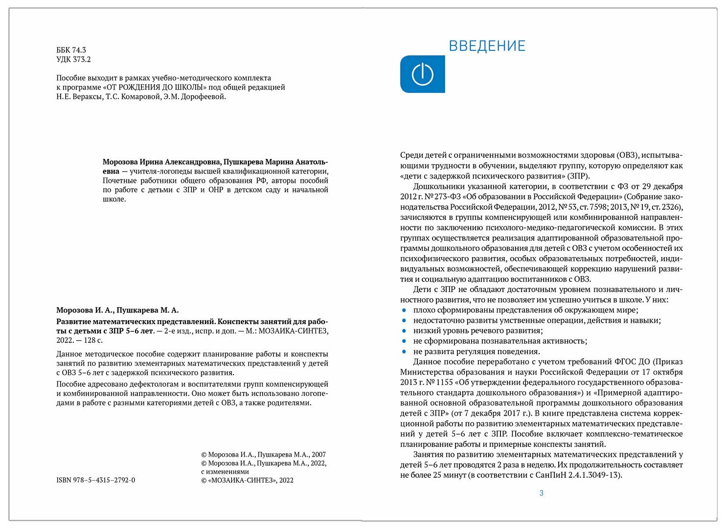 Развитие математических представлений. Конспекты занятий для работы с детьми с ЗПР 5-6 лет (Пушкарева Марина Анатольевна; Морозова Ирина Александровна); Мозаика-Синтез, 2022