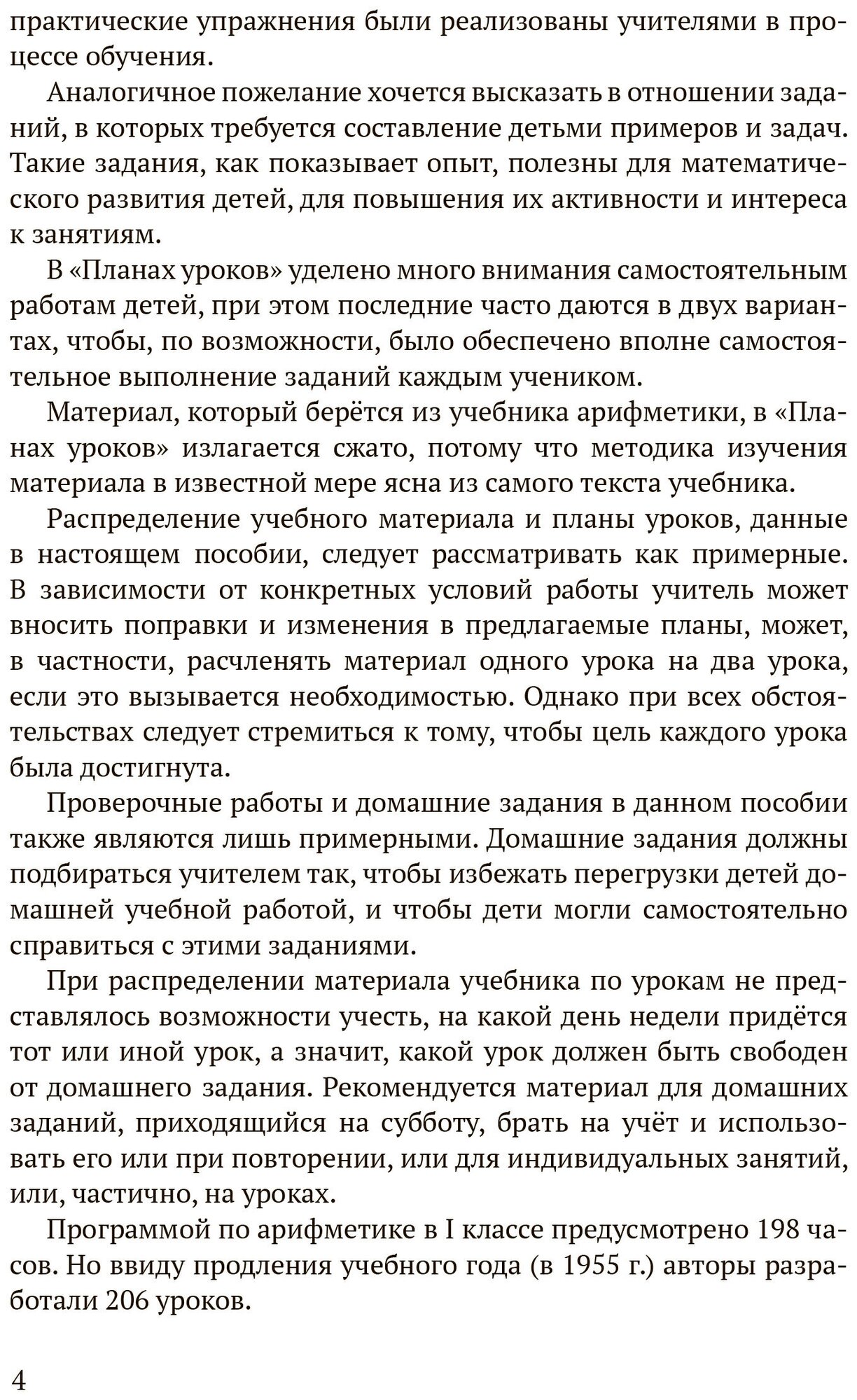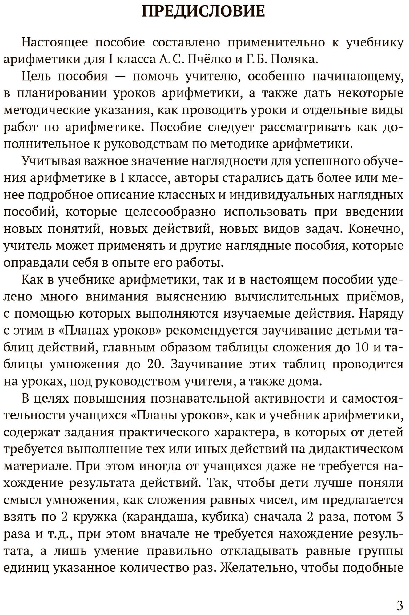 Предлагаемое методическое пособие составлено применительно к учебнику арифметики для I класса А.С. Пчёлко и Г.Б. Поляка и может выступать в качестве дополнительного руководства в преподавании дисциплины. Разработанная программа обучения состоит из 206 уроков, которые распределены по учебным четвертям. При необходимости учитель вправе корректировать структуру любого урока по своему усмотрению – например, уделять больше времени заданиям, вызывающим трудности. Для развития математического мышления ребенка в пособие включены как задания на самостоятельное составление примеров и задач, так и упражнения практического характера, не требующие нахождения результата действий. Постепенное увеличение уровня сложности изучаемых тем позволяет находить альтернативные методы решения задач на основе ранее полученных знаний. Для закрепления пройденного материала даны примеры самостоятельных работ. Пособие предназначено для учителей начальных классов и родителей, чьи дети находятся на домашнем обучении.