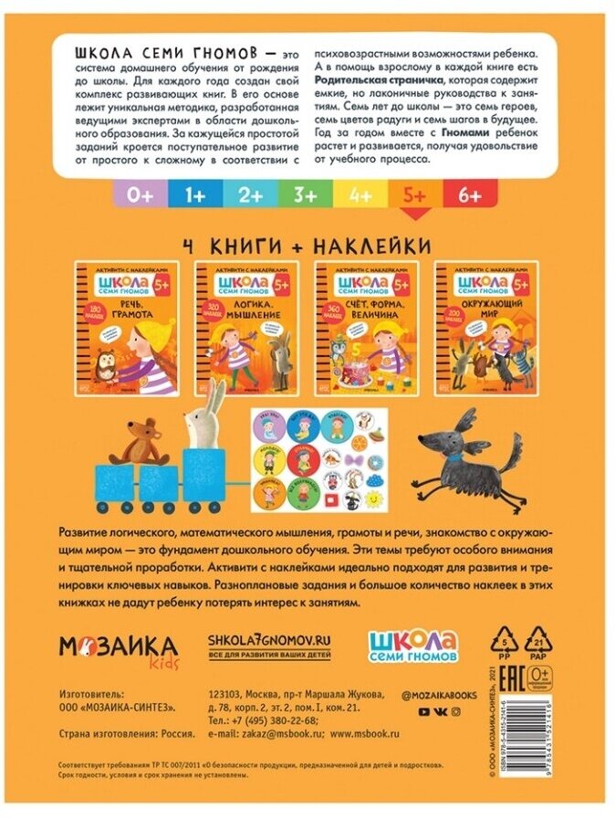 Школа Семи Гномов. Активити с наклейками. Комплект 5+ (комплект из 4 книг) (Д. Денисова, Л. Бурмистрова, Ю. Дорожин); Мозаика-Синтез, 2021