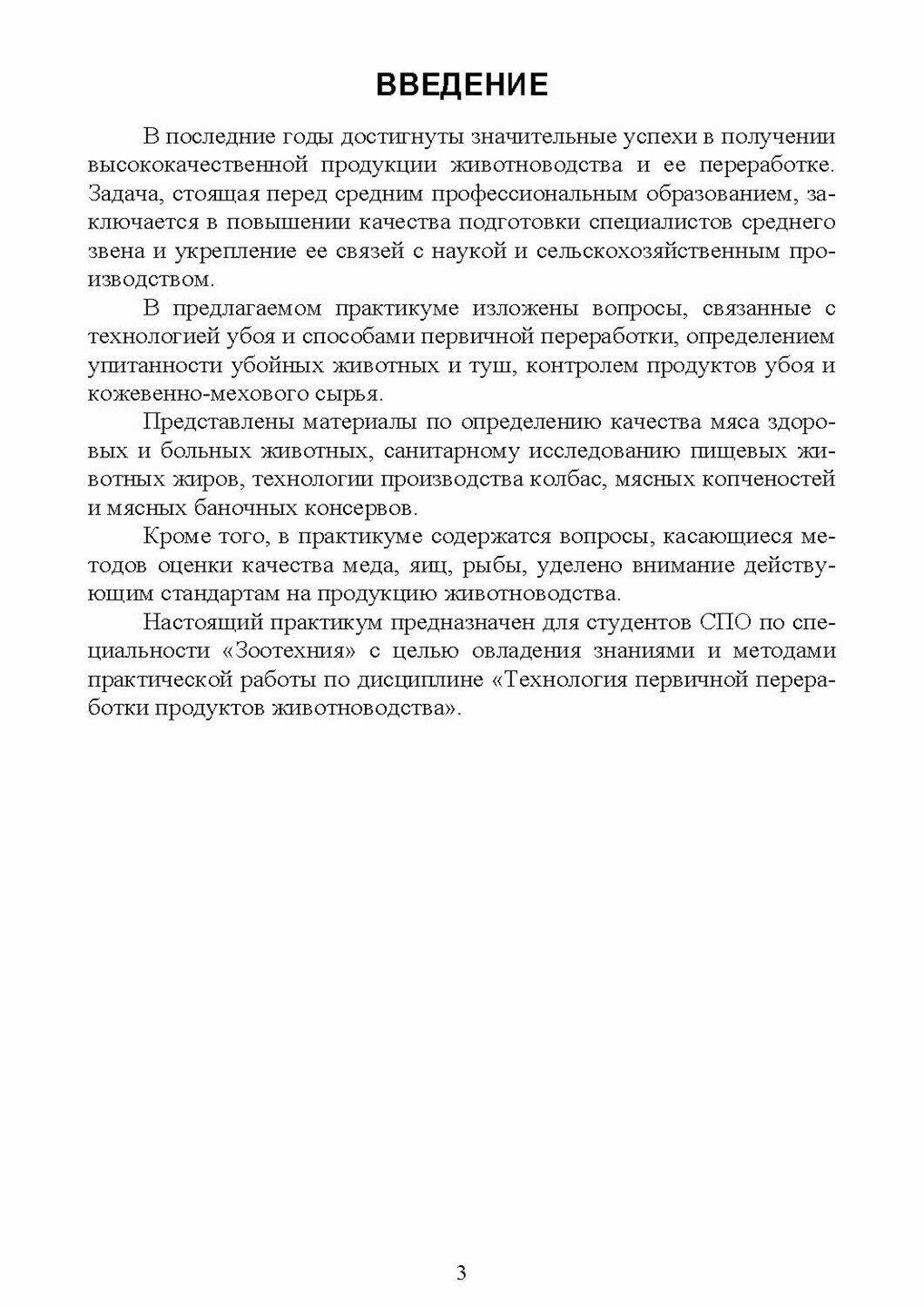 Практикум составлен в соответствии с Федеральным государственным образовательным стандартом среднего профессионального образования по специальности "Зоотехния" и примерной программой по дисциплине "Технология первичной переработки продуктов животноводства".