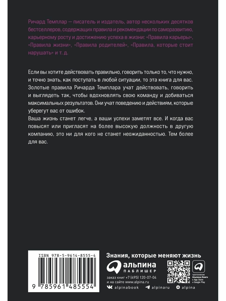 - Золотые правила Ричарда Темплара учат действовать, говорить и выглядеть так, чтобы вдохновлять свою команду и добиваться максимальных результатов. Они учат поведению и действиям, которые уберегут вас от ошибок.