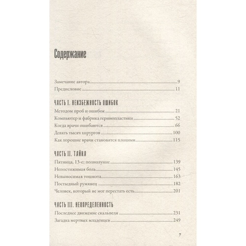 Рассказывая трогательные, пронзительные истории из своей практики, автор откровенно говорит о серьезных проблемах и ограничениях современной медицины, о загадках человеческого организма, о том, как хорошие врачи становятся плохими, об удачах и неудачах в работе хирурга, о лечебных ошибках и о том, какое это счастье, когда удается спасти жизнь пациента.