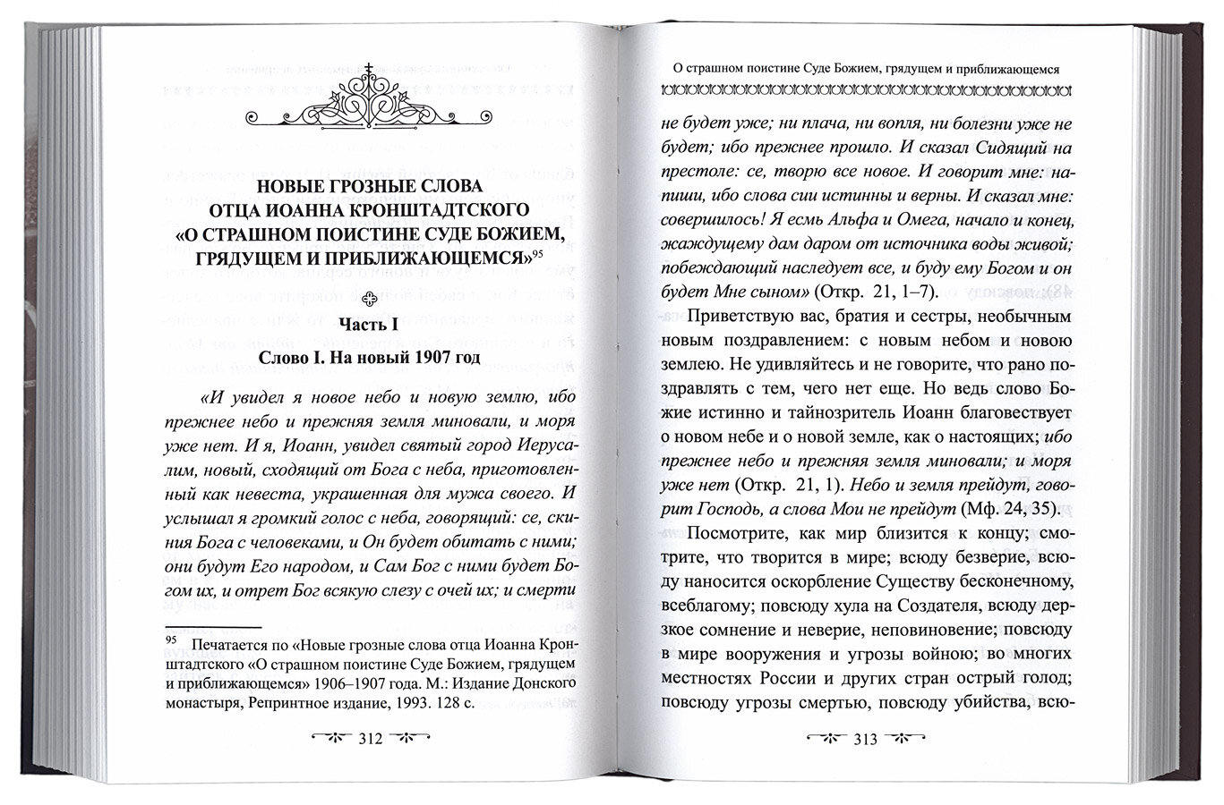 В сборник творений святого праведного Иоанна Кронштадтского «О Церкви и Страшном Суде» вошли избранные проповеди и дневниковые записи всероссийского пастыря о Православной Церкви, состоянии и судьбе русского народа, и грядущем Суде Божием. Несмотря на вековую давность этих слов, они и по сей день звучат очень остро: и в наше время многие православные люди столь же беспечны и теплохладны к вопросам веры и своей будущей вечной участи, совсем не учитывая или забывая уроки прошлого.