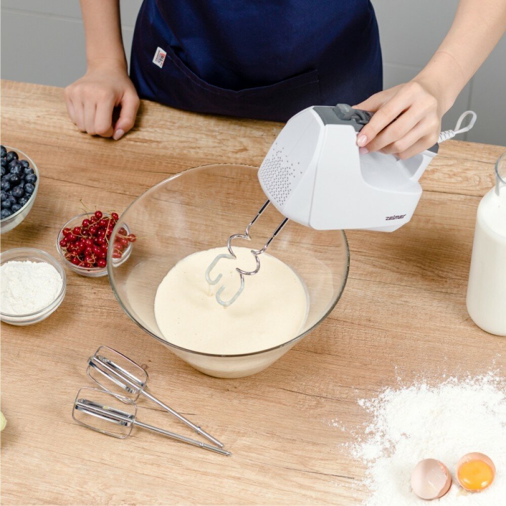 Чтобы удовлетворить ваши требования, миксер ручной ZELMER оснащен 5 скоростями. Благодаря им вы можете легко настроить вращение устройства под свои нужды. Максимальная мощность двигателя нашего аппарата составляет 750 Вт. Даже замес тяжелого дрожжевого теста не станет для вас проблемой. Функция Turbo гарантирует мгновенный разгон до максимальной скорости. Кроме того, он позволяет работать в пульсирующем режиме, что удобно, например, при смешивании ингредиентов разной консистенции.
