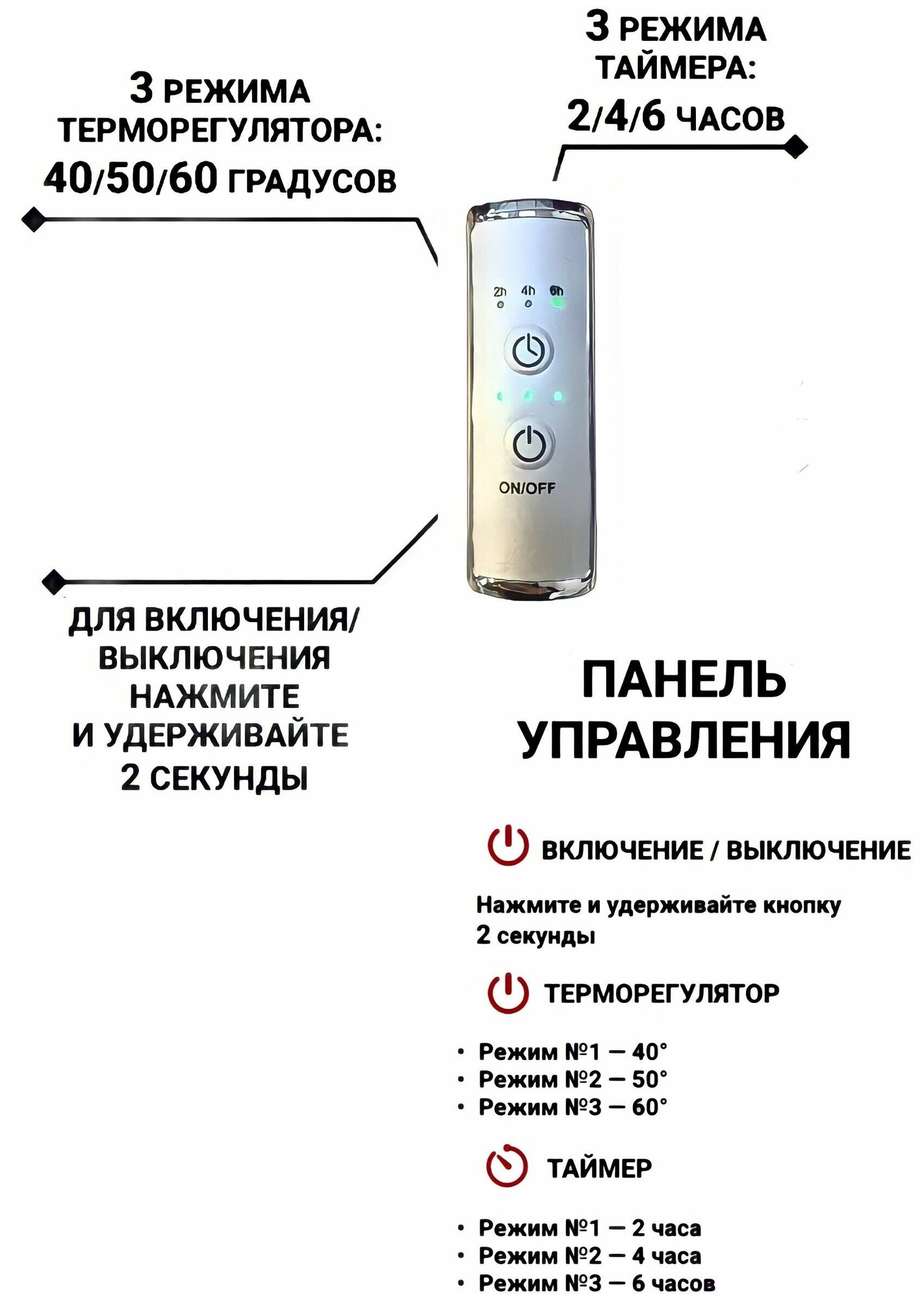 | Дополнительные функции | таймер; терморегулятор; световая индикация |