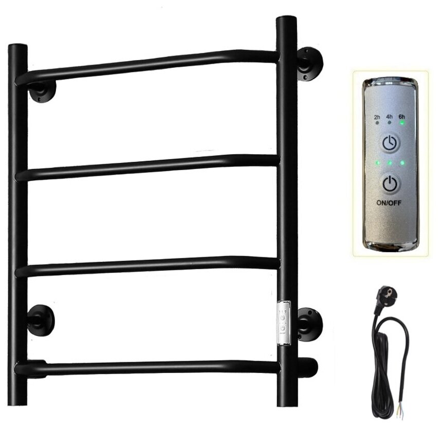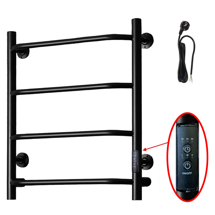 Электрический полотенцесушитель Тругор Пэксп6/6050черныйВГП. Благодаря оптимальному химическому составу, современным промышленным технологиям и применяемому материалу сталь изделие отличается высокой коррозионной стойкостью при эксплуатации в органических кислотных и прочих умеренно агрессивных средах, комплект скрытого подключения; нагревательный кабель; выключатель с таймером и терморегулятором; шнур электропитания с вилкой; телескопический держатель - 4 шт.