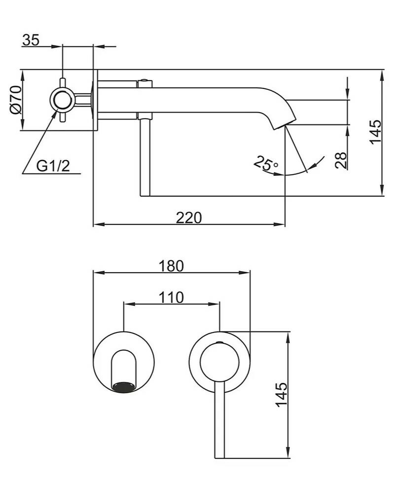 - Количество отверстий для монтажа: 1.