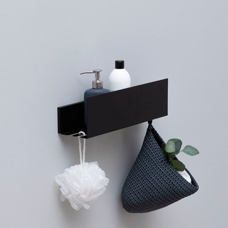 Металлическая полка Aquanet Магнум Н 50 341533. Полка Aquanet Магнум Н 50x12 - это компактное и стильное решение для организации пространства, которое сочетает в себе функциональность и современный дизайн. Она идеально подойдет для хранения мелочей, сохраняя порядок и эстетику в помещении. Характеристики:Цвет: черный матовый. Материал: нержавеющая сталь (гарантирует прочность и устойчивость к коррозии). Габариты (ШxВxД): 500x120x108,5 мм. Полка подходит для использования в мокрых зонах, так как даже при повреждении покрытия она не ржавеет. Гладкое матово-сатиновое покрытие полимерно-порошковая эмаль - покрытие, устойчивое к воздействию влаги. Толщина металла - 1,5 мм. Наличие крючков добавляет функциональности, позволяя размещать полотенца, халаты или другие аксессуары. Высокий бортик обеспечивает удобное хранение предметов, предотвращая их падение. Отсутствие острых краев и углов делает ее безопасной для использования. Монтаж: подвесной. В комплекте поставки:Металлическая полка. Комплект креплений.
