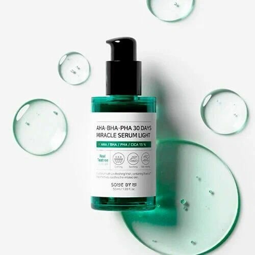 Лёгкая сыворотка для лица с кислотами Some By Mi AHA.BHA.PHA 30 Days Miracle Serum Light - это продукт, который помогает бороться с различными проблемами кожи, такими как акне, мелкие морщины и пигментация. Средство обладает легкой текстурой, которая быстро впитывается, не оставляя жирной пленки. Одним из ключевых компонентов сыворотки являются кислоты AHA, BHA и PHA. Они помогают отшелушивать омертвевшие клетки кожи, удалять излишки кожного сала и устранять засорения пор, благодаря чему кожа выглядит более свежей и чистой. Кроме того, сыворотка содержит экстракт гамамелиса, который сужает поры, увлажняет кожу и устраняет покраснения. Сыворотка также содержит натуральные экстракты растений, такие как экстракт листьев чайного дерева, который является мощным антибактериальным и противовоспалительным средством, а также экстракт алоэ вера, который увлажняет кожу и помогает снять раздражение.