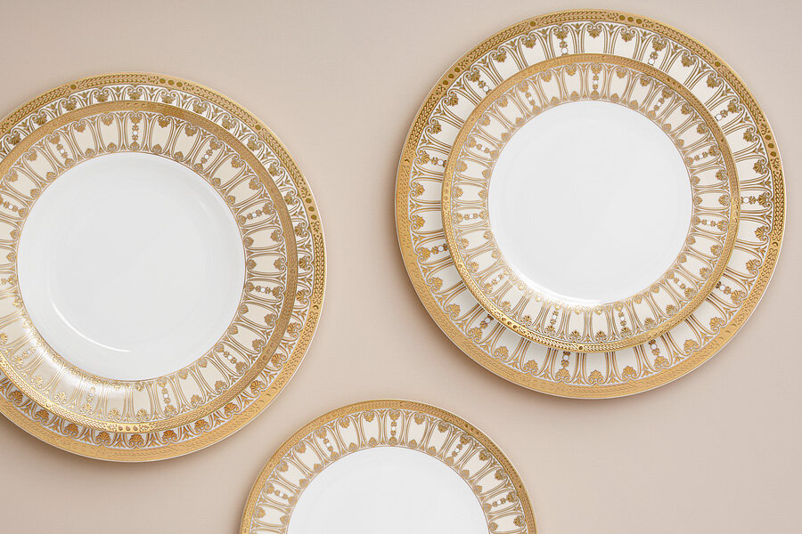 Коллекция Contessa выполнена из твёрдого фарфора и представлена обеденными и чайными сервизами на 6 и 12 персон.