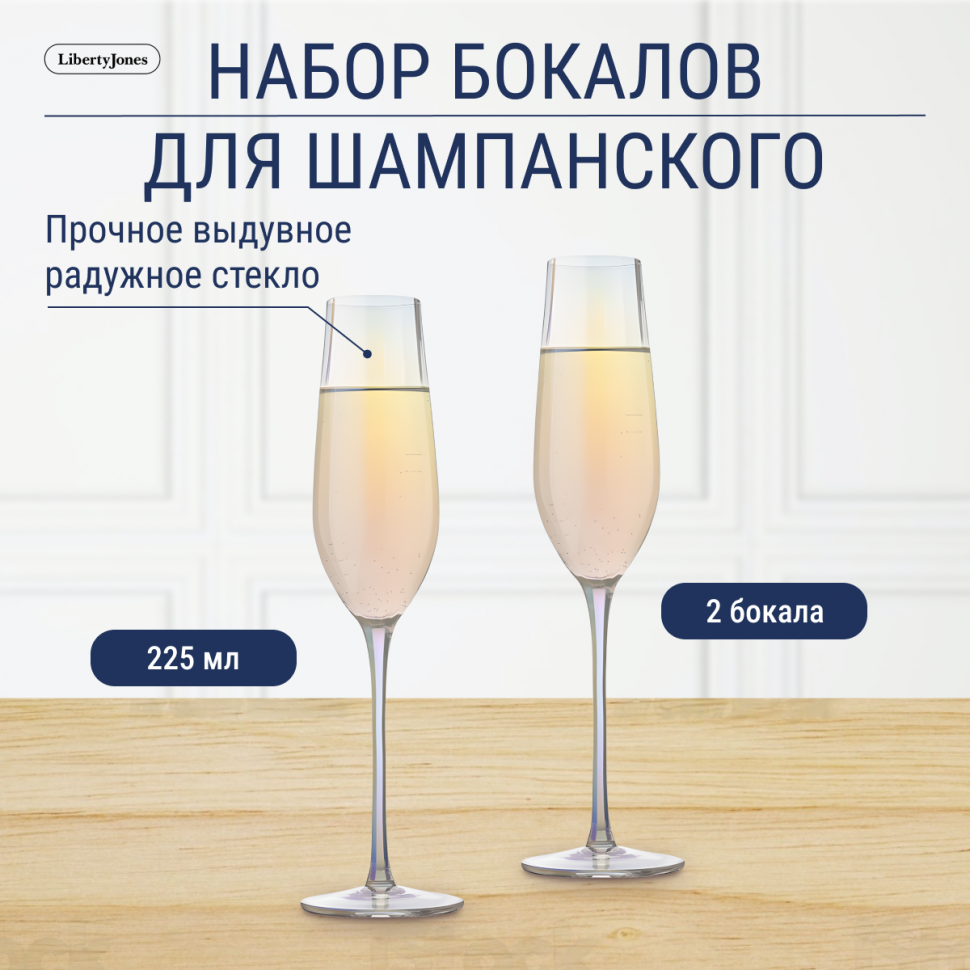 Набор бокалов для шампанского Liberty Jones Gemma Opal 225мл 2шт (HM-GOL-CHGLS-225-2)