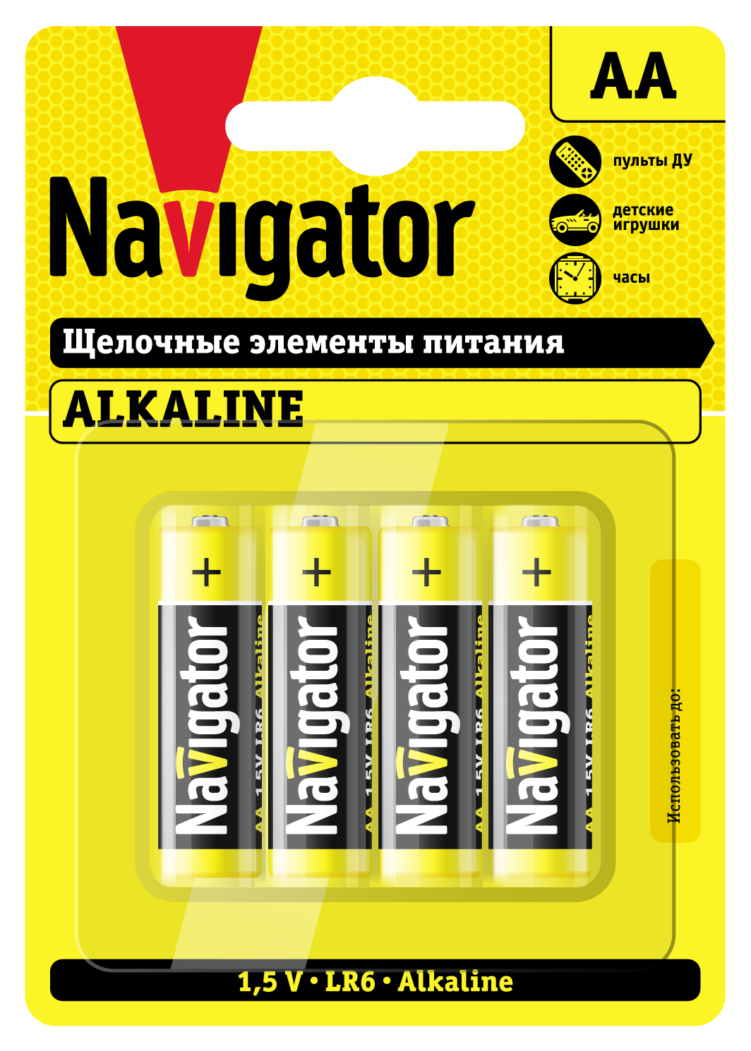 Алкалиновые батарейки NAVIGATOR ''Alkaline'' AA - надежное питание для повседневных устройств. Алкалиновые батарейки NAVIGATOR ''Alkaline'' типоразмера AA - это разумный выбор для стабильной работы домашних устройств. Созданные с применением современных технологий и строгим контролем качества, они предлагают оптимальное сочетание долговечности, надежности и экологической безопасности. Ключевые преимущества. Эффективность и долгий срок службы: Работают до 5 раз дольше по сравнению с обычными солевыми батарейками, что делает их экономически выгодным решением для регулярного использования. Стабильная работа: Обеспечивают надежное напряжение 1.5 В для бесперебойной работы приборов со средним и низким энергопотреблением. Безопасность и экологичность: Не содержат ртути и кадмия, соответствуют строгим экологическим стандартам. Долгое хранение: Срок предэксплуатационного хранения составляет 5 лет, поэтому вы можете смело делать запасы, не беспокоясь о потере заряда. Проверенное качество: Изготовлены из высококачественных материалов, что гарантирует их надежность и защиту от протекания. Идеальны для широкого спектра устройств с умеренным энергопотреблением: пульты дистанционного управления, настенные часы и будильники, беспроводные компьютерные мыши и клавиатуры, детские игрушки с невысоким энергопотреблением, радиоприемники и портативные колонки, электронные термометры и кухонные весы. В упаковке вас ждут 4 алкалиновые батарейки NAVIGATOR ''Alkaline'' типоразмера АА (LR6). Этого удобного набора хватит для одновременного обеспечения нескольких ваших домашних устройств надежной энергией. Выбирайте проверенное качество NAVIGATOR для стабильной работы техники день за днем!