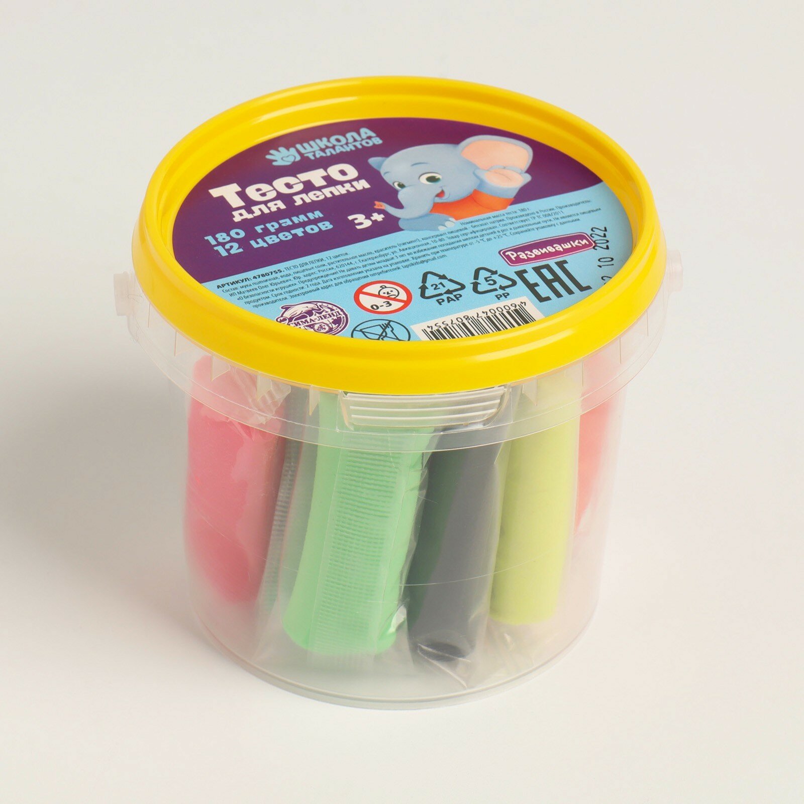 Тесто для лепки 12 цветов по 15 г в ведёрке Школа талантов