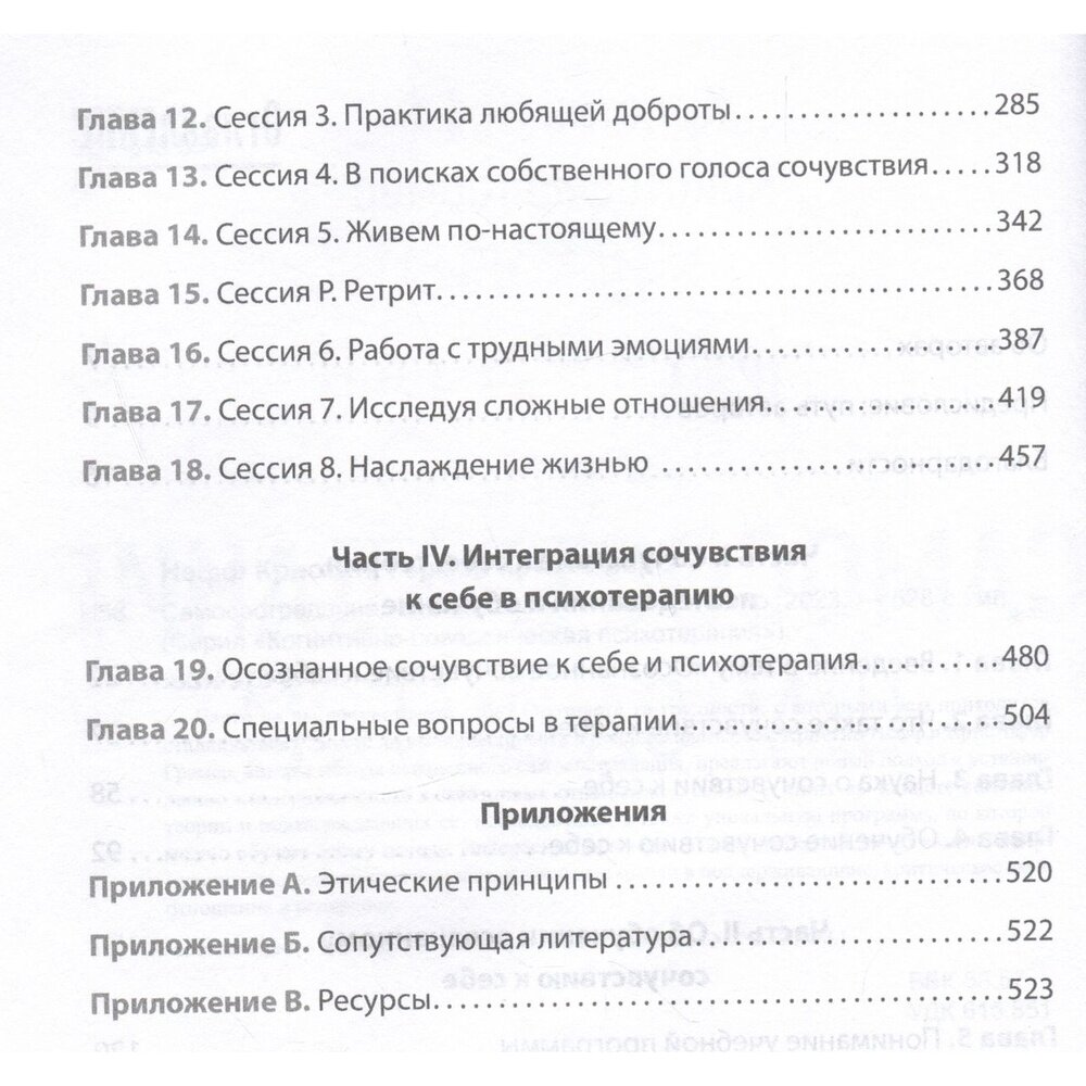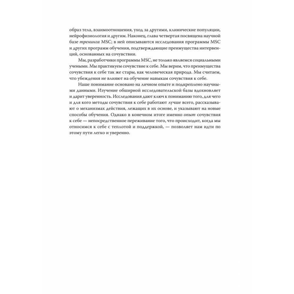Часто ли вы сочувствуете себе? Осознаете те трудности, с которыми вам приходится сталкиваться? Умеете ли вы подбадривать и поддерживать себя. Кристин Нефф и Кристофер Гремер, авторы метода осознанного самосострадания, предлагают новый подход к установлению поддерживающих и заботливых отношений с собой. В книге вы найдете описание теории и подтверждающих ее исследований, а также уникальную программу, по которой можно обучать этому методу. Интересные примеры, взятые из сессий, помогают переформулировать привычные самоуничижительные мысли в поддерживающие, критическое само отношение в ресурсное.