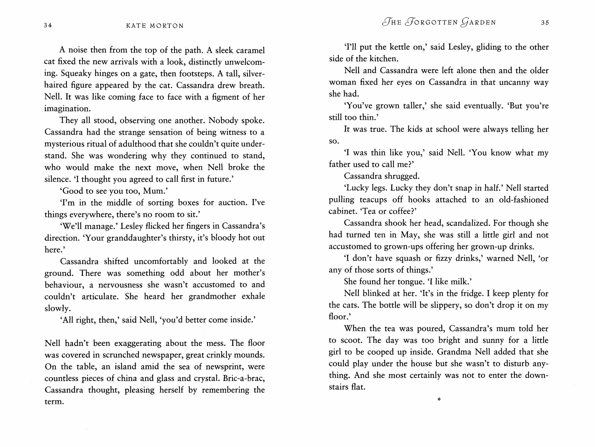 On Nell's death, her granddaughter, Cassandra, comes into an unexpected inheritance. Cliff Cottage and its forgotten garden are notorious amongst the Cornish locals for the secrets they hold - secrets about the doomed Mountrachet family and their ward Eliza Makepeace, a writer of dark Victorian fairytales. It is here that Cassandra will finally uncover the truth about the family, and solve the century-old mystery of a little girl lost.