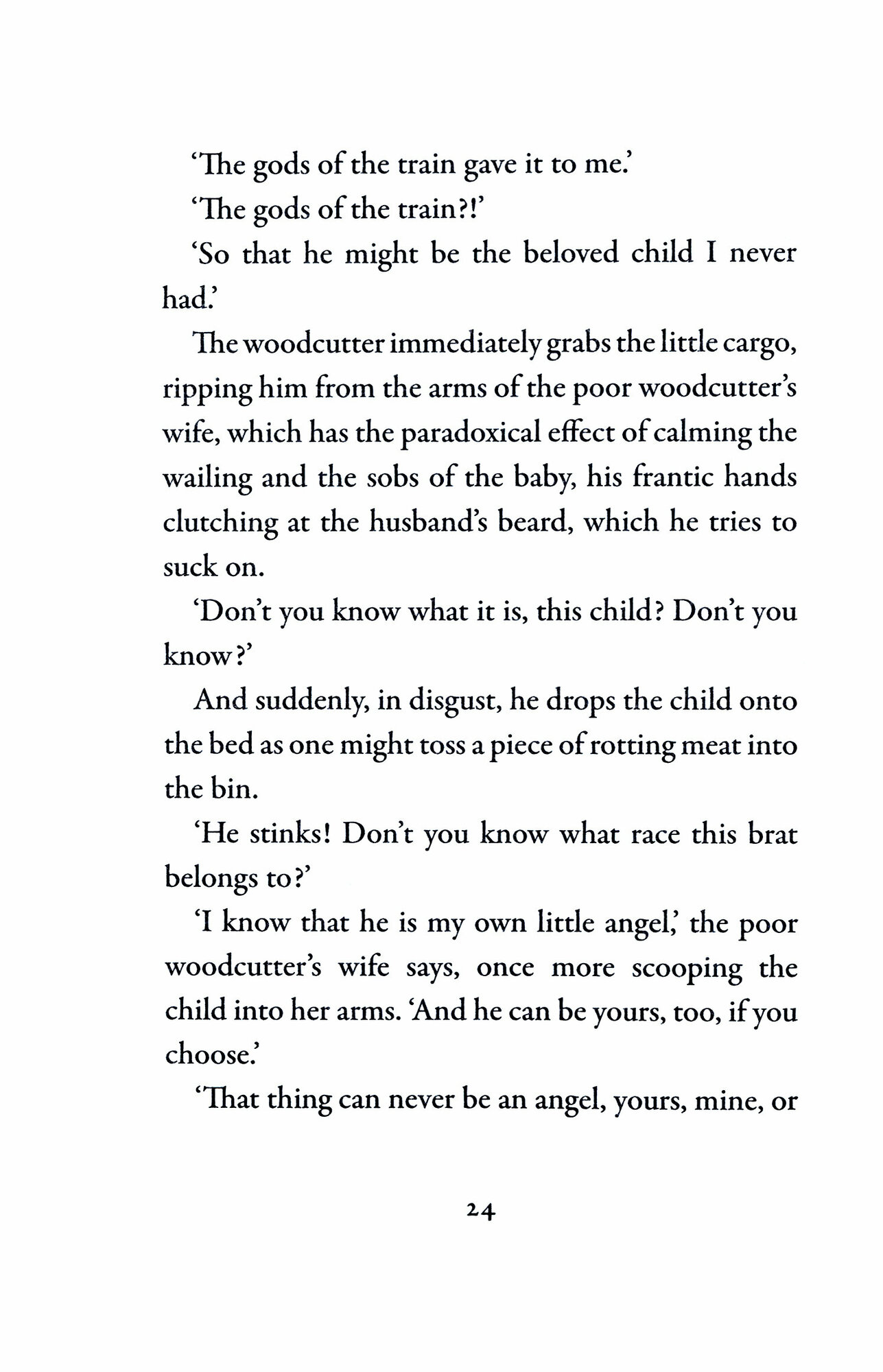 Once upon a time in an enormous forest there lived a poor woodcutter and his wife. Around them a war wages, and hunger is a constant companion. Yet every night, the woodcutter's wife prays for a child.