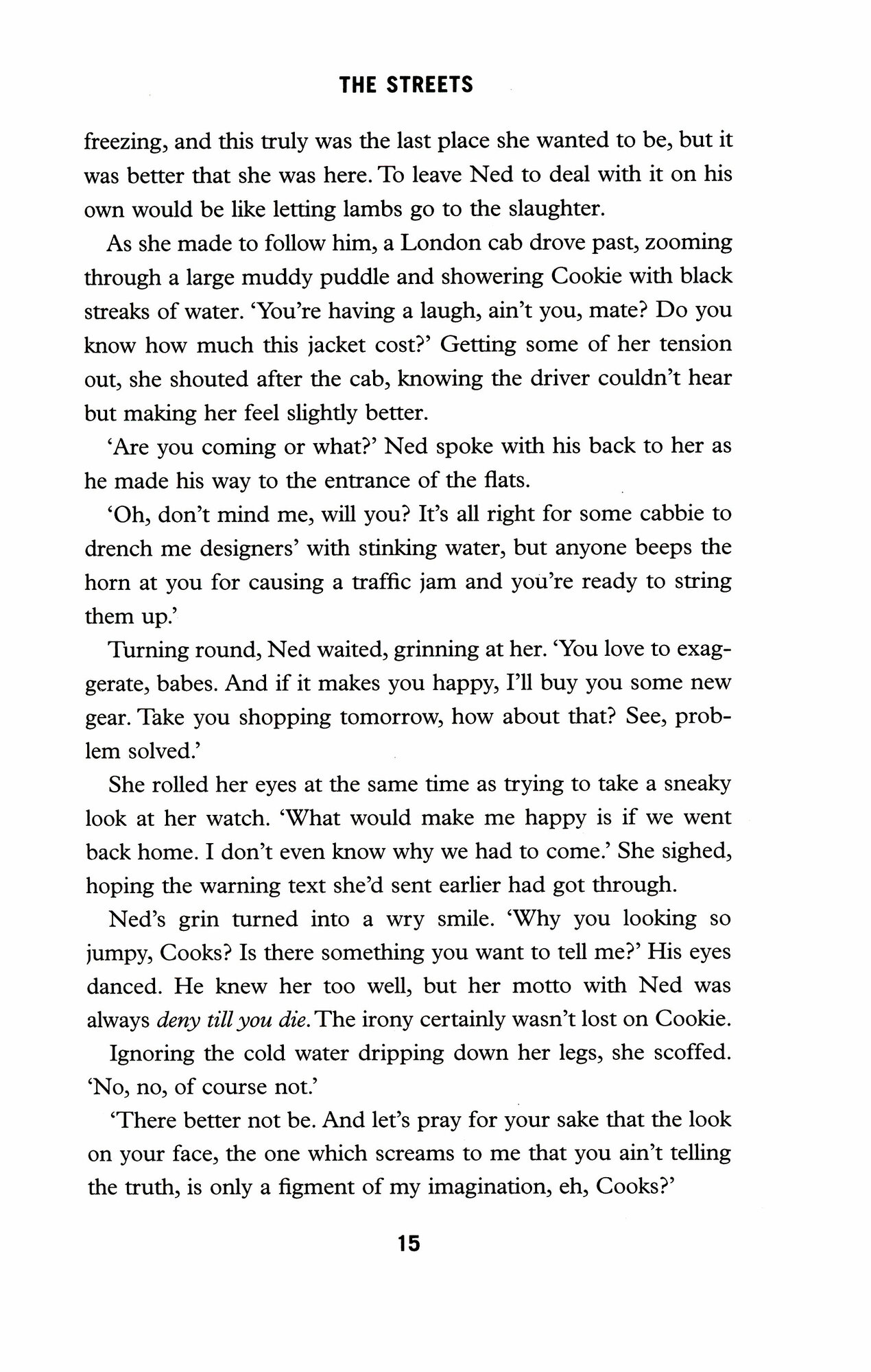 Cookie Mackenzie, is not only Ned Reid's lover, but she also works for him. She supplies the girls - and boys - for Ned's clients. There's always some runaway kid who needs shelter.