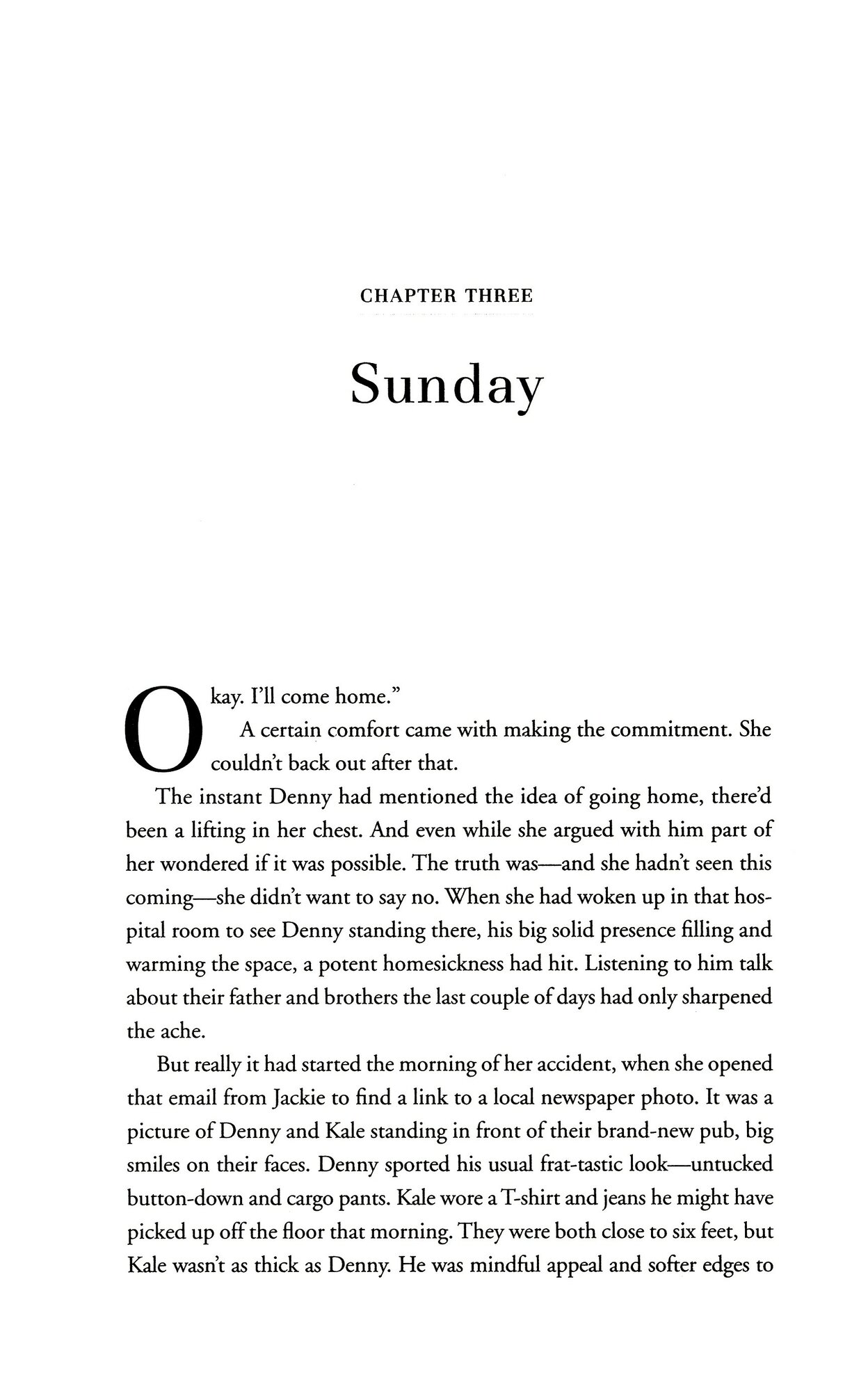 When twenty-nine-year-old Sunday Brennan wakes up in a Los Angeles hospital, bruised and battered after a drunk-driving accident she caused, she swallows her pride and goes home to her family in New York. But it's not easy. She deserted them all - and her high school sweetheart - five years before, with little explanation, and they've got questions.