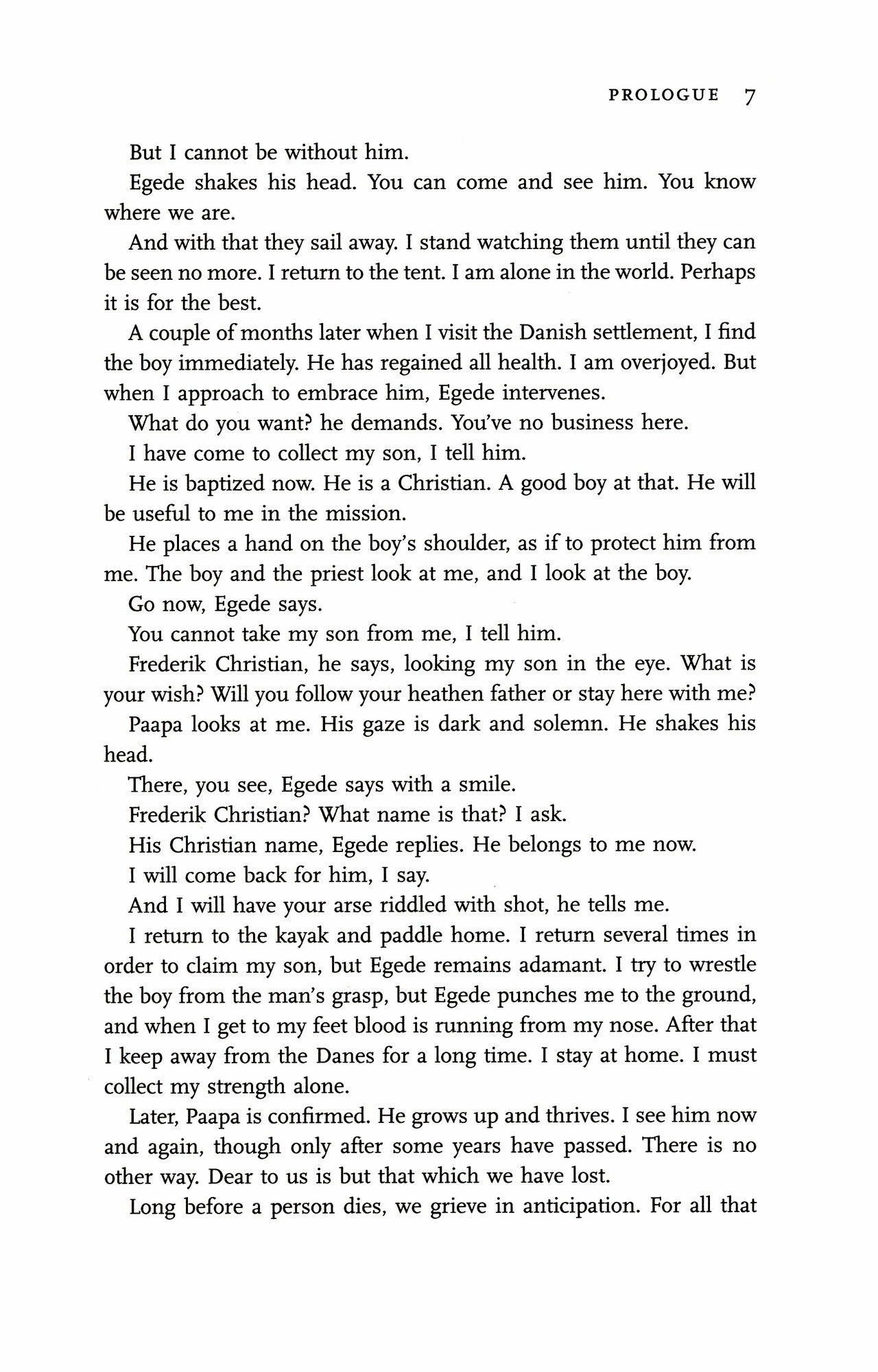 In the tradition of Conrad's Heart of Darkness, an immensely powerful historical novel about the first encounters between Danish colonists and Greenlanders in the early eighteenth century, of brutal clashes between priests and pagans and the forces that drive each individual towards darkness or light.