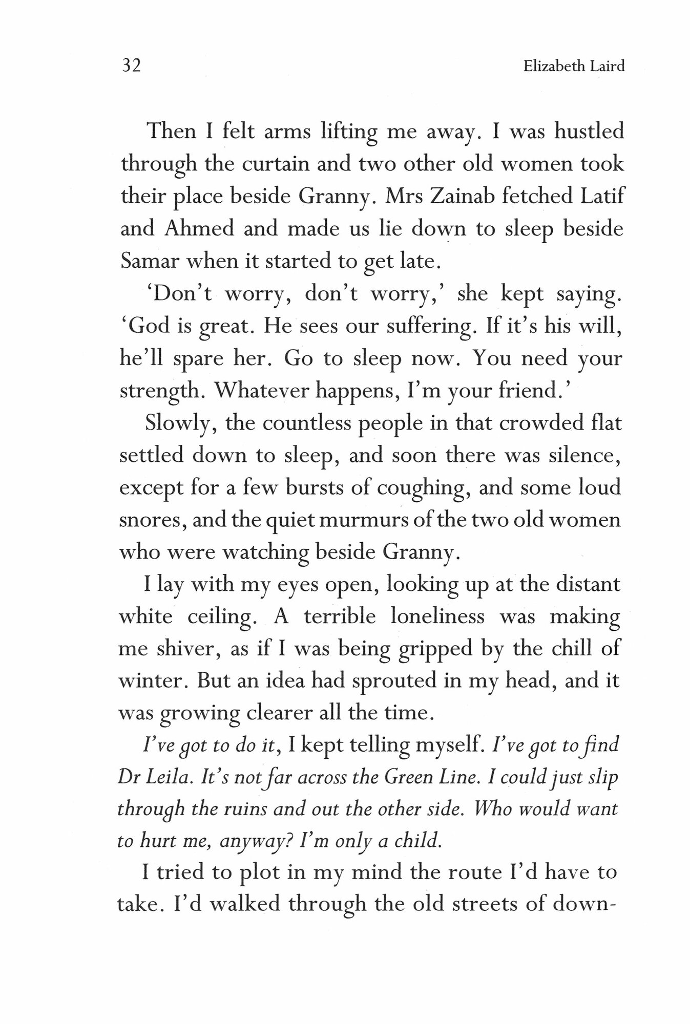 Since her father left Lebanon to find work and her mother tragically died in a shell attack, ten-year-old Ayesha has been living in the bomb-ravaged city of Beirut with her granny and her two younger brothers. The city has been torn in half by civil war and a desolate, dangerous no man's land divides the two sides. Only militiamen and tanks dare enter this deadly zone, but when Granny falls desperately ill, Ayesha sets off on a terrifying journey to reach a doctor living in enemy territory.