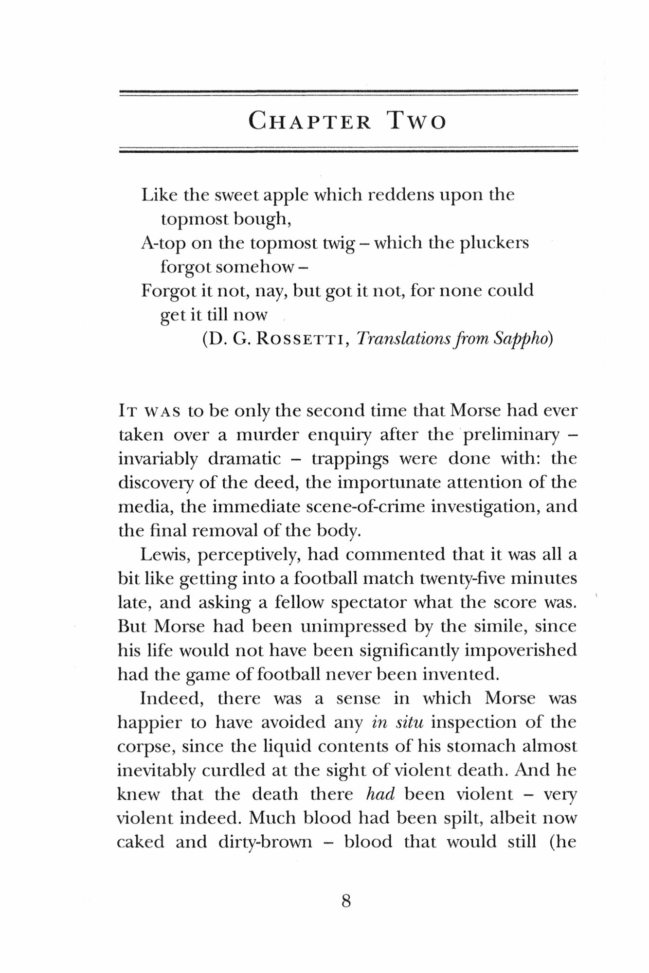 Bizarre and bewildering - that's what so many murder investigations in the past had proved to be… In this respect, at least, Lewis was correct in his thinking. What he could not have known was what unprecedented anguish the present case would cause to Morse's soul.