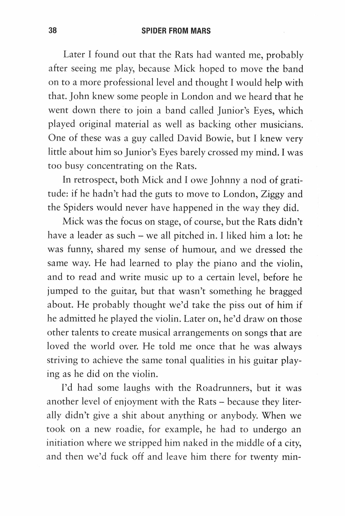 Woody's memoir, which he started work on in 2014, focuses on this key period and brings it to glorious life. With the confidence of youth, Woody always thought he'd be in a famous band but the nineteen-year-old rocker from Hull never expected to be thrust into London's burgeoning glam rock scene, and also into a bottle-green velvet suit and girl's shoes. Playing with Bowie took him on an eye-opening and transformative journey. In Spider From Mars he writes candidly about the characters who surrounded Bowie, recalling the album sessions as well as behind-the-scenes moments with one of the world's most iconic singers. The result is an insightful, funny, poignant memoir that lovingly evokes a seminal moment in music history and pays tribute to one of the most outstanding and innovative talents of our time.