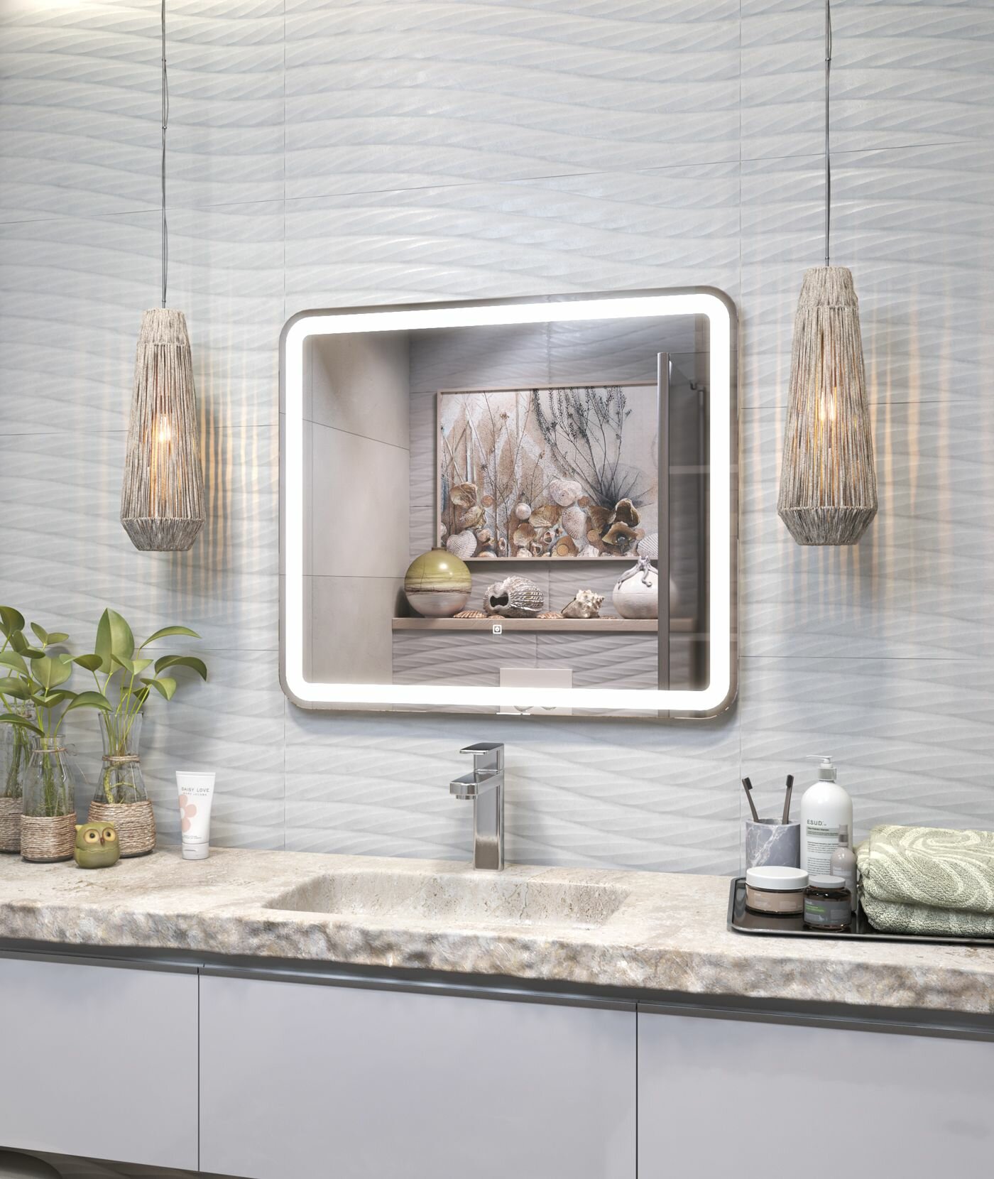 Выбрали недорогое зеркало, но оказалось очень хорошим. Поверхность без дефектов и царапин. Подсветка очень приятная, не отдает в синеву, освещает равномерно и в меру ярко. Включается на сенсорную кнопочку. Сзади плотный корпус и прочного пластика. С установкой разобрались быстро.