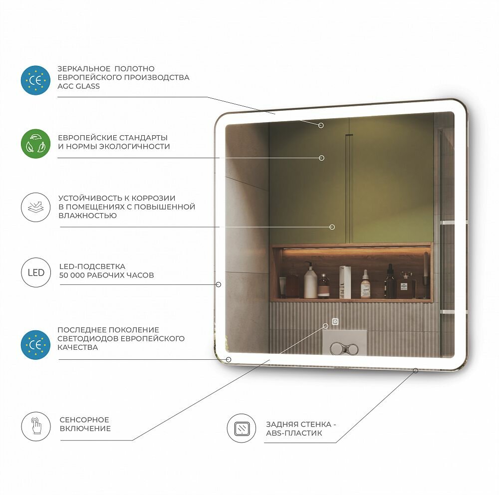 Зеркало Vigo Flam Classic 80 с подсветкой и сенсорным выключателем Flam Classic 60