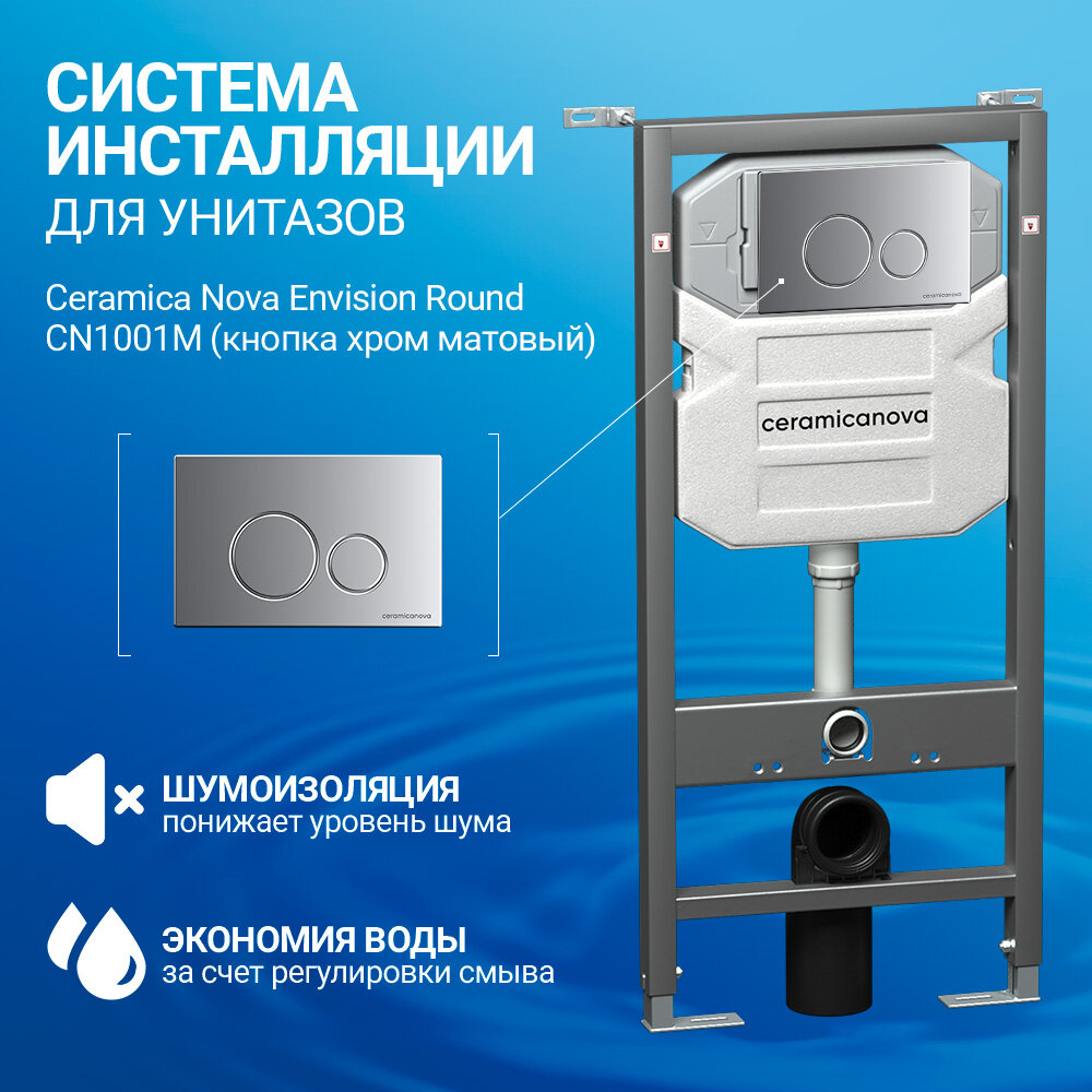 Комплект поставки: Система инсталляции для унитазов Ceramica Nova Round кнопка хром матовый. Дополнительная информация: кнопка Round хром матовый.