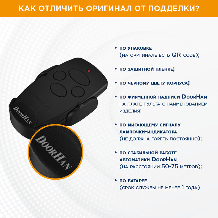Пульт Doorhan предназначен для дистанционного управления четырьмя автоматическими устройствами DoorHan или автоматикой других производителей, к которой подключен радиоприемник DoorHan.