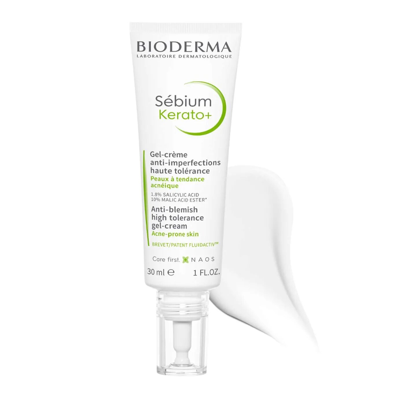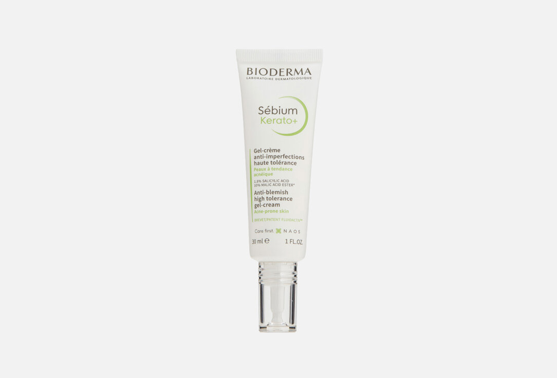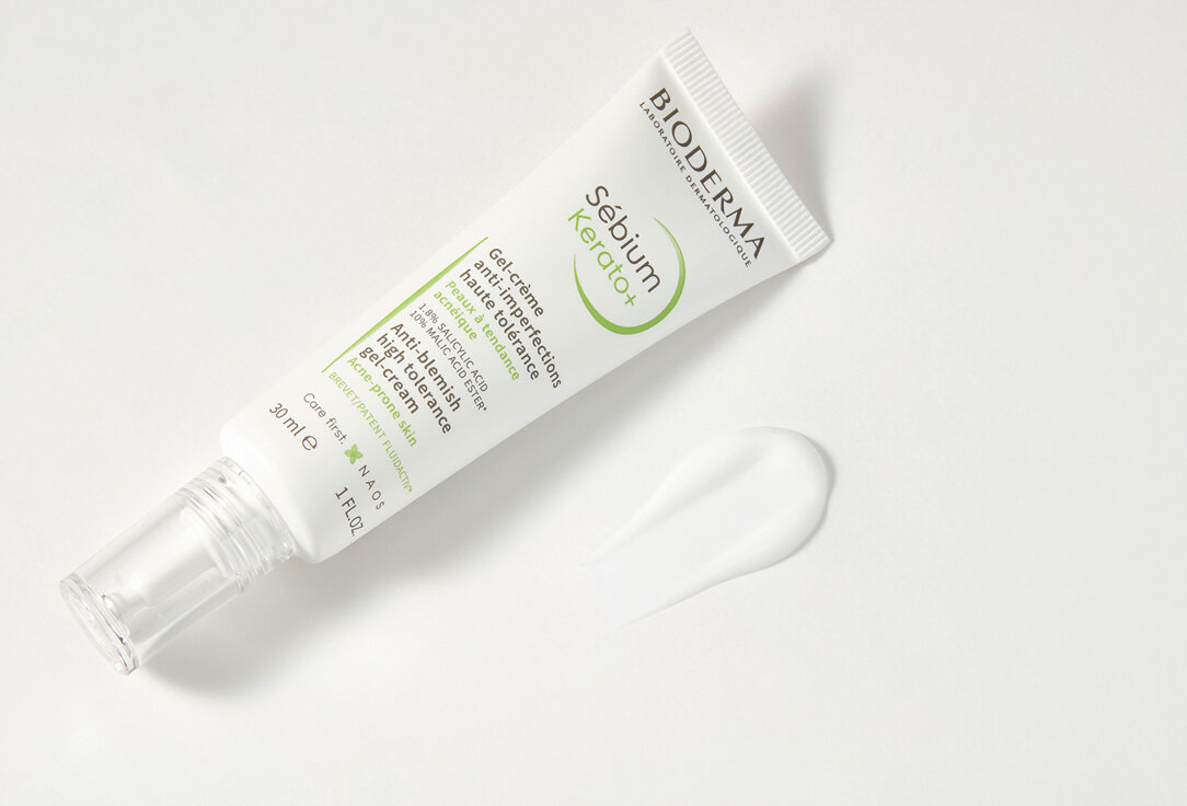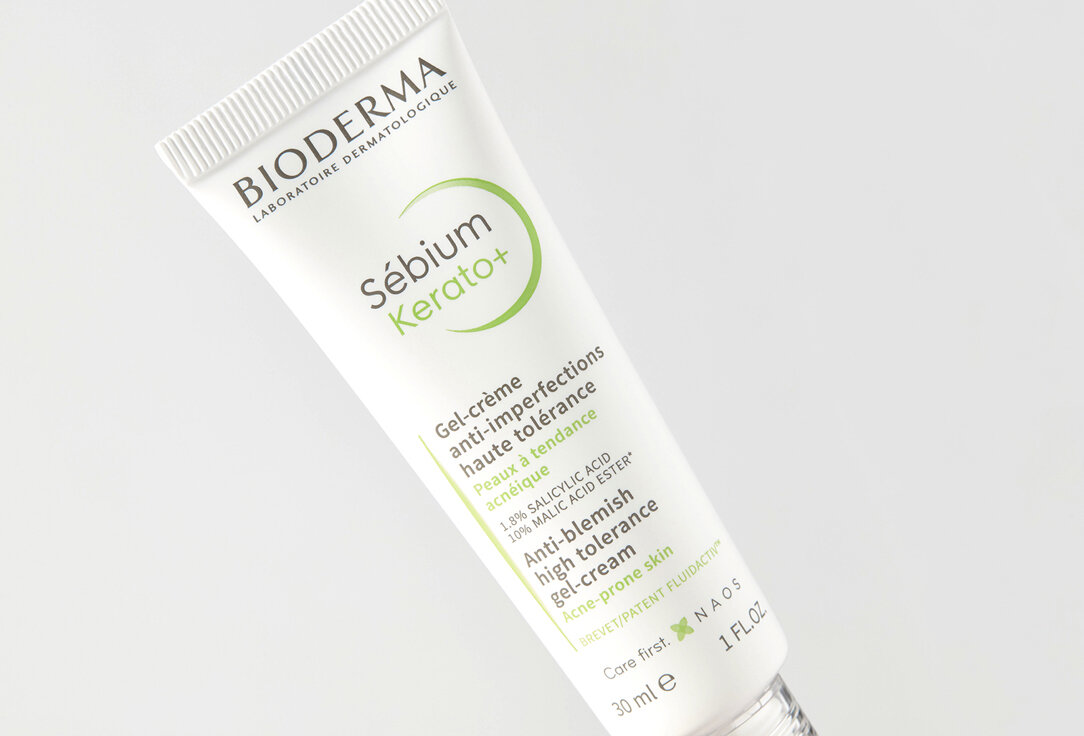Гель-крем Керато+ разработан для жирной кожи, склонной к появлению акне. Благодаря эффективной комбинации отшелушивающих кожу активных компонентов (салициловая кислота 1,8%, яблочная кислота 10%) гель быстро устраняет несовершенства и черные точки. Способствует обновлению кожи и предотвращает риск образования пигментных пятен. Нормализует качество себума, препятствует появлению новых несовершенств. Увлажняет в течение 8 часов.