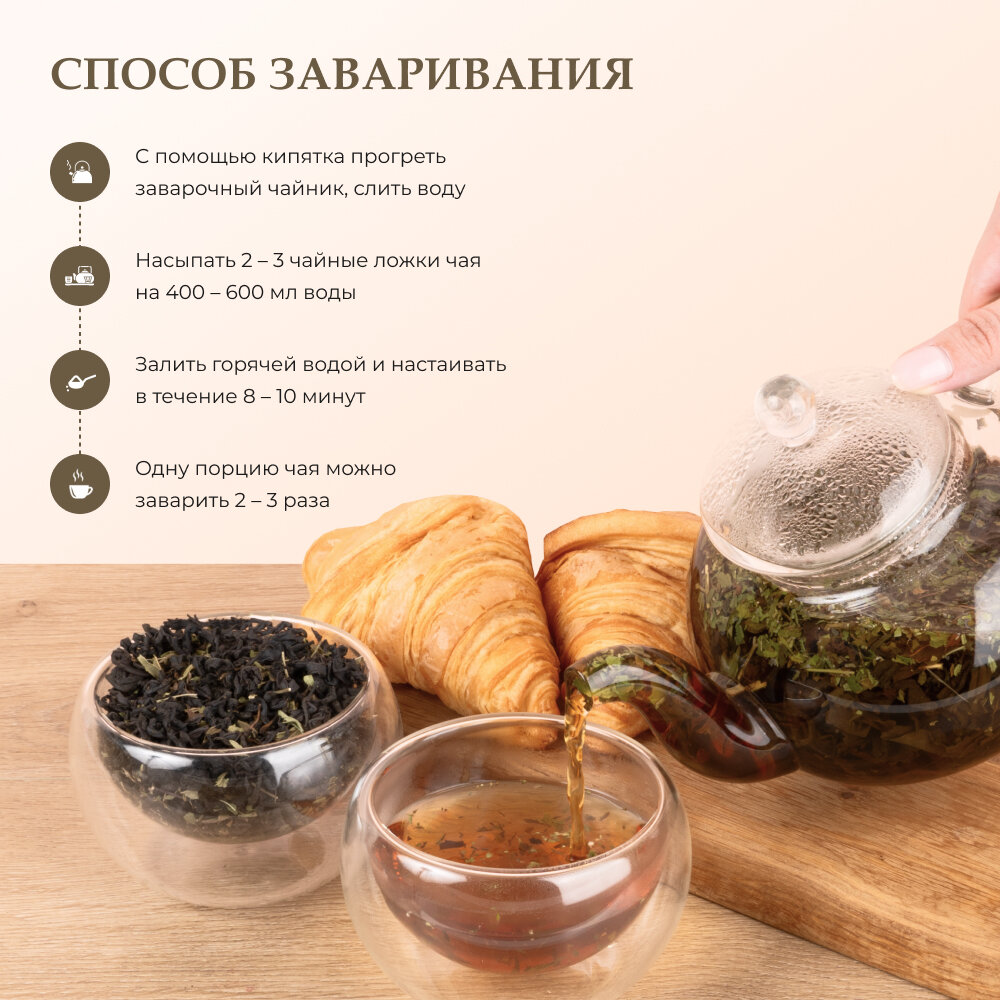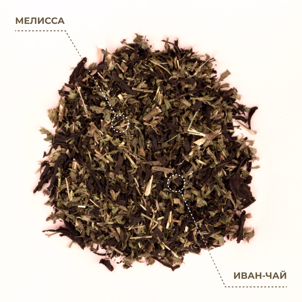 Благодаря эфирным маслам мелиссы данный купаж раскрывается ярким ароматом лимонной свежести и цветочной сладостью. Утонченный вкус ферментированного иван-чая с мелиссой подарит ощущение спокойствия и гармонии после долгого дня.