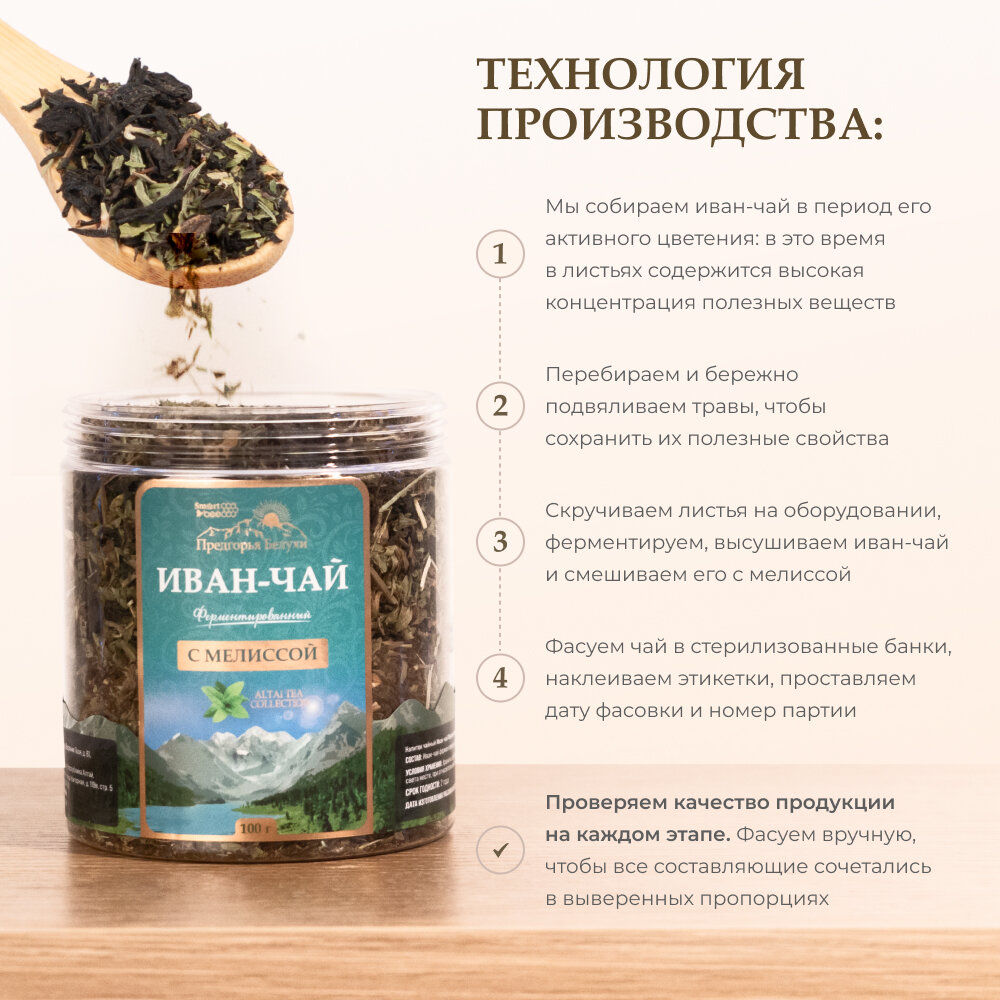 Иван-чай ферментированный с мелиссой 100 г Предгорья Белухи (ЭХ99989442512)