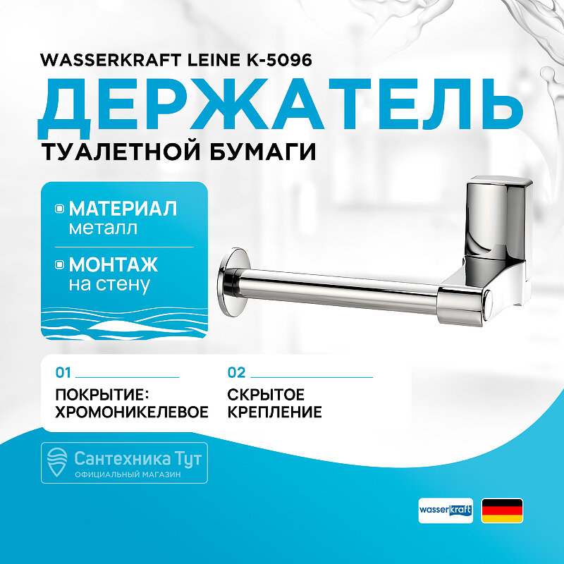 Держатель для туалетной бумаги WasserKRAFT Leine K-5096 Leine хром (K-5096)