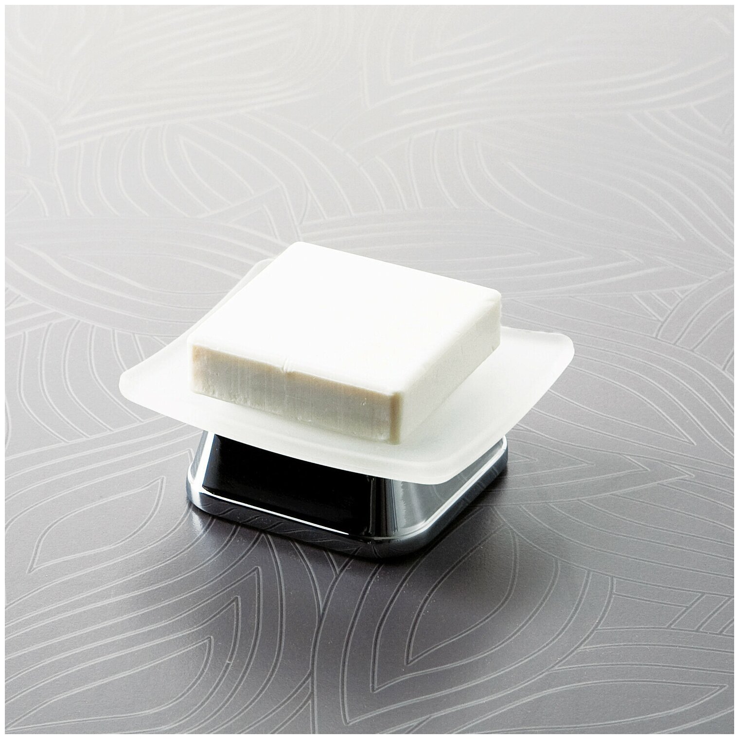 Мыльница для ванной комнаты. Материал: металл, хромоникелевое покрытие, матовое стекло