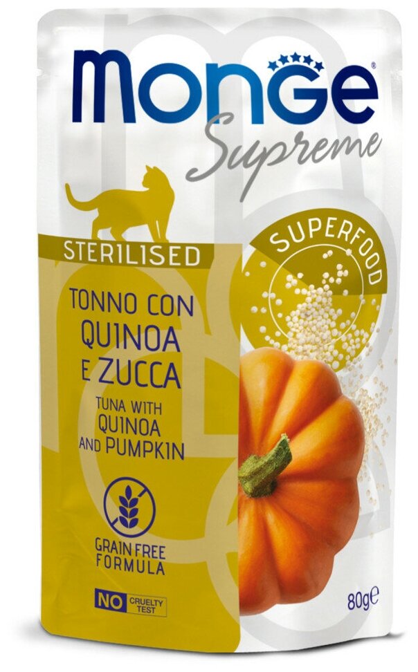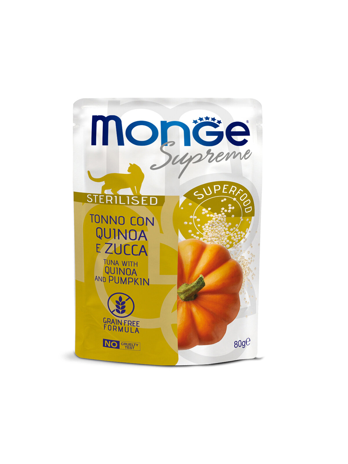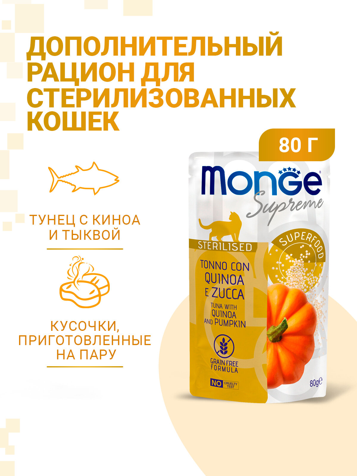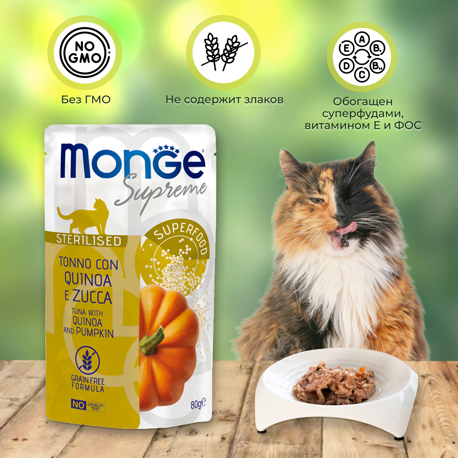 Влажный корм Monge Supreme sterilized cat для стерилизованных кошек из тунца с киноа и тыквой, паучи 80 г