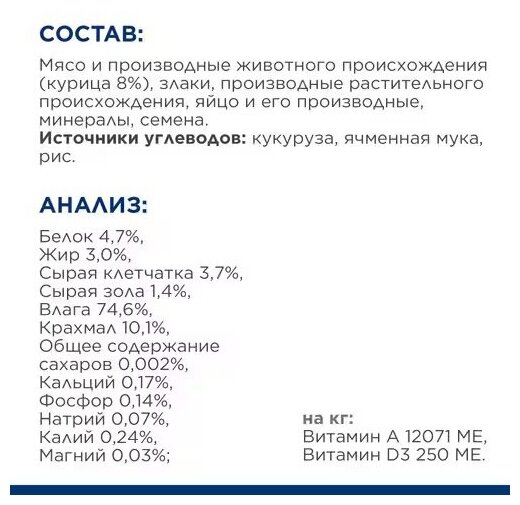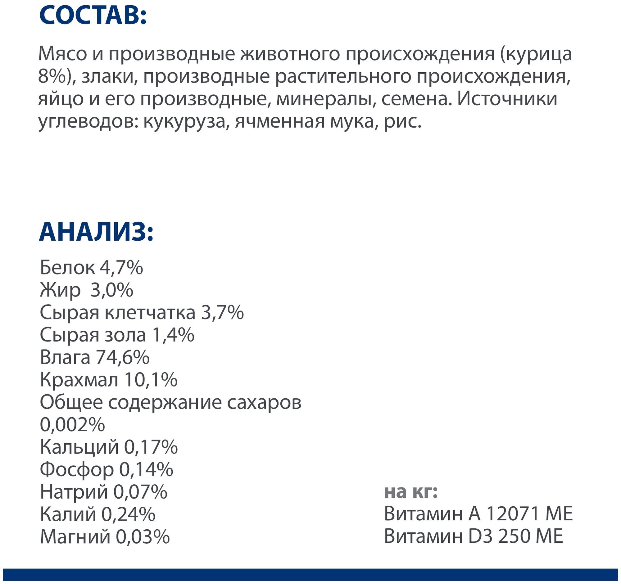 | Возраст животного | Взрослые (1 - 7 лет) |