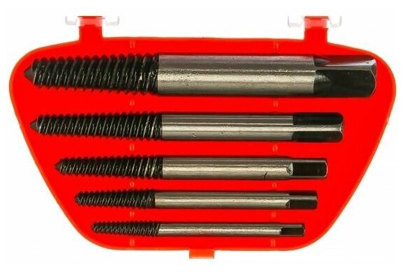 | Подробный состав комплекта | Экстракторы (5 шт.):№1 (3–6 мм), №2 (6–8 мм), №3 (8–11 мм), №4 (11–14 мм), №5 (14–19 мм), вороток |
