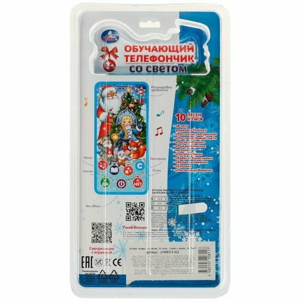 Умка Обучающий телефончик «Оранжевая корова» ТМ «УМка» непременно понравится маленьким поклонникам одноимённого мультсериала: 200+ песен, стихов и загадок обучает алфавиту и правильному произношению кнопка «Вкл./Выкл.» Яркий телефон сделает обучение малыша лёгким и интересным. Он с удовольствием будет нажимать на разноцветные кнопочки и слушать весёлые песенки и стихи, а так же разгадывать загадки. Кроме того, в лёгкой игровой форме он сможет выучить алфавит. Компактную игрушку удобно брать с собой. Обучающий телефон ТМ «УМка» развивает: память слуховое восприятие и музыкальный слух тактильные навыки визуальное восприятие моторику Размер игрушки: 5 x 10 x 2 см Материал: пластмасса Работает от 3-х батареек типа ААА (в комплекте) Рекомендовано детям от 3-х лет.
