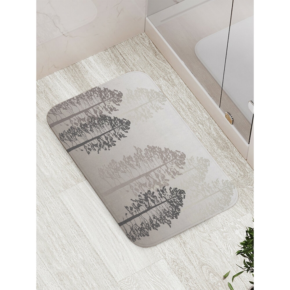 Противоскользящий коврик для ванной сауны бассейна JOYARTY Коврик для ванной комнаты и туалета противоскользящий Деревья в тумане 52х77 см