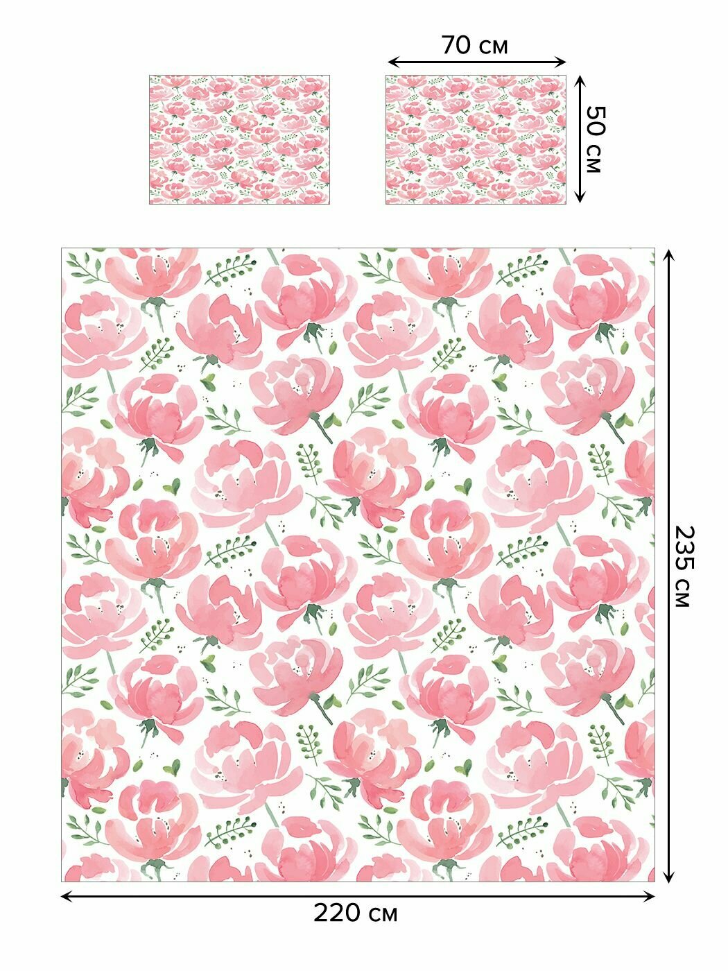 Комплектация: покрывало 220х235 см (2х-спальное), наволочки 50х70 см – 2 шт.