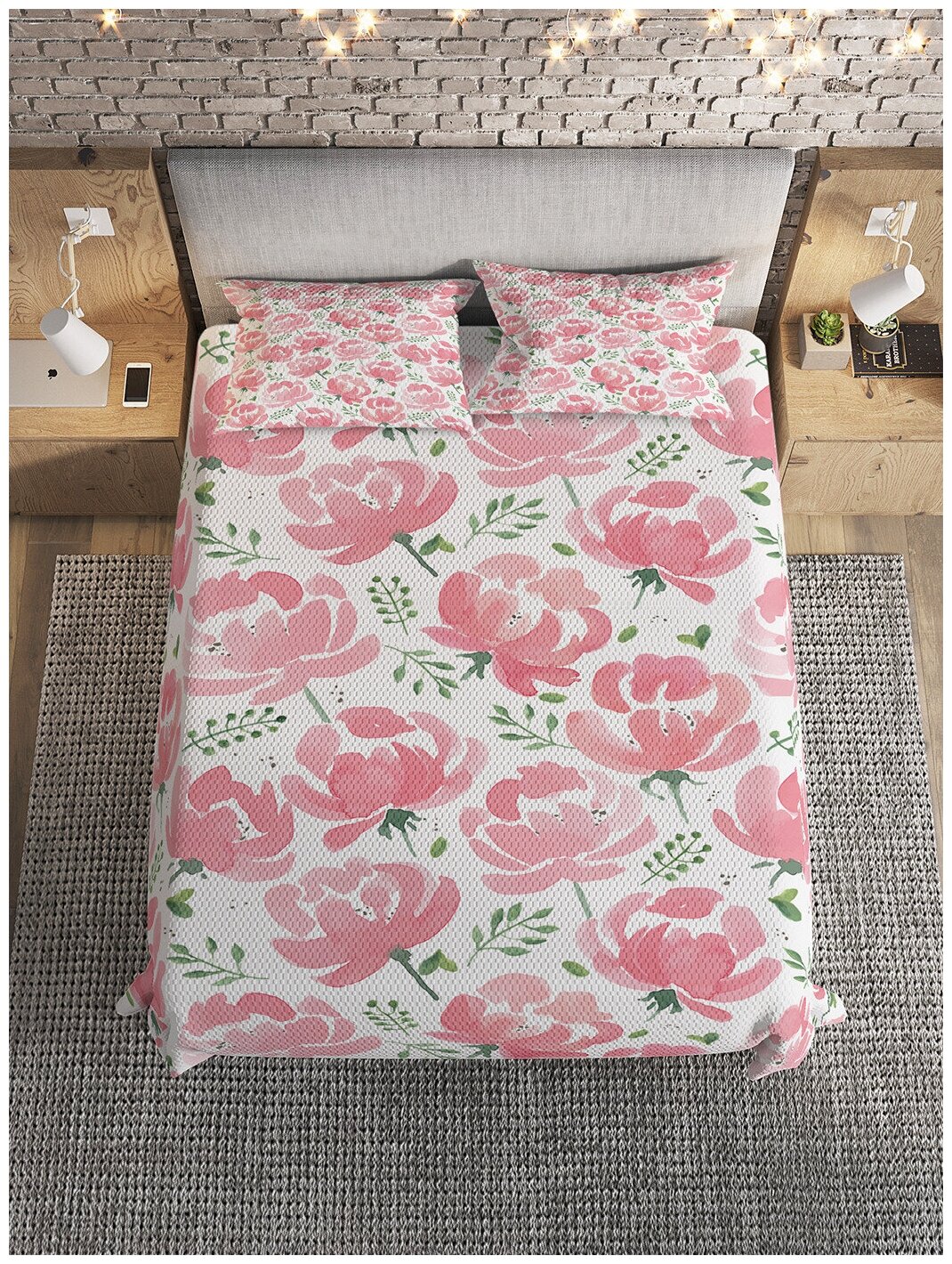 Покрывало Ambesonne 220х235 см с 2 наволочками 50x70 см Покрывало Нарисованные розы 235x220 и две наволочки 70х50 (размер: 200х220-240)