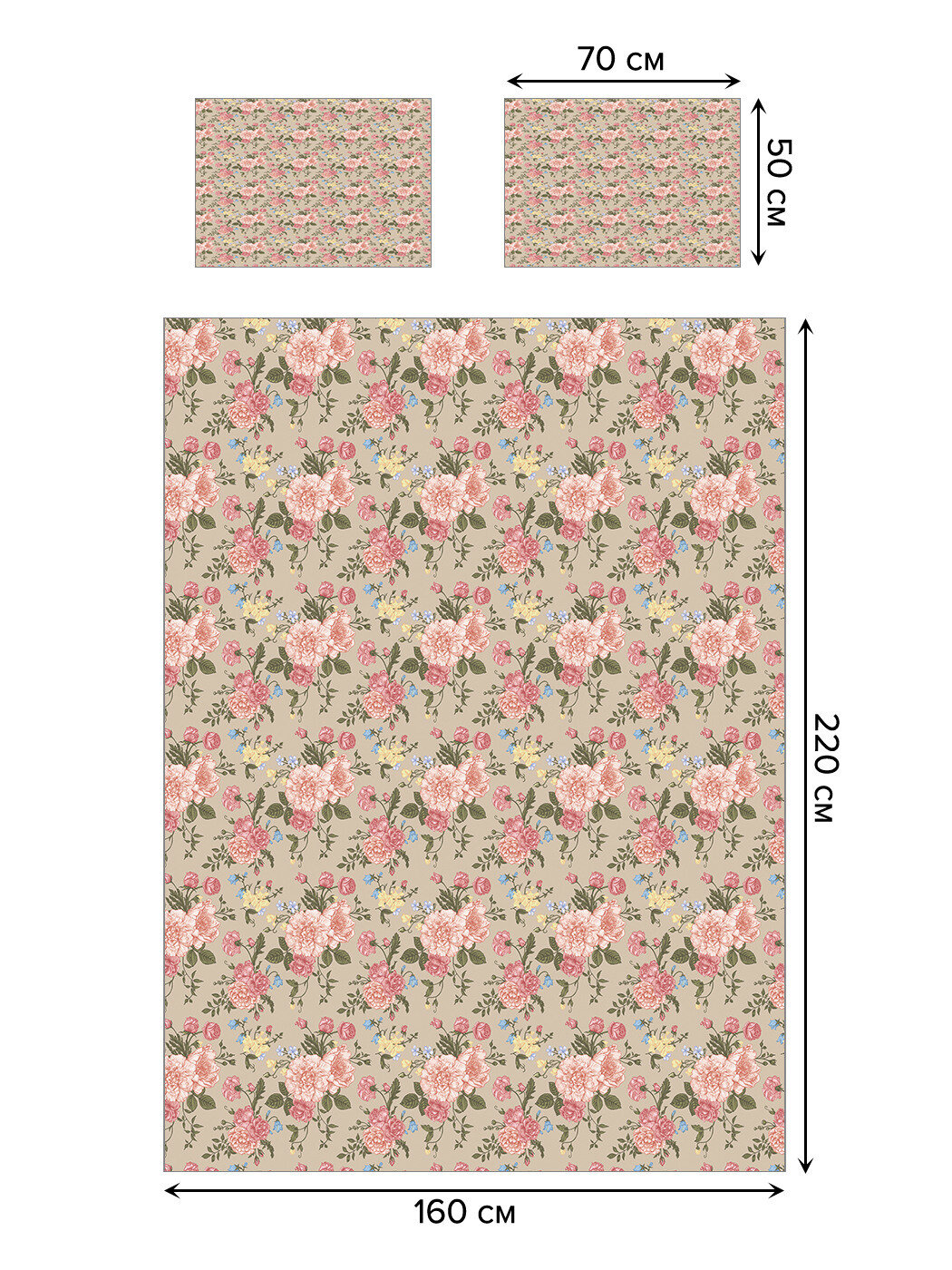 Модель: Покрывало на 1.5-спальную кровать Нежные розовые цветы 220х160 и две наволочки 70x50